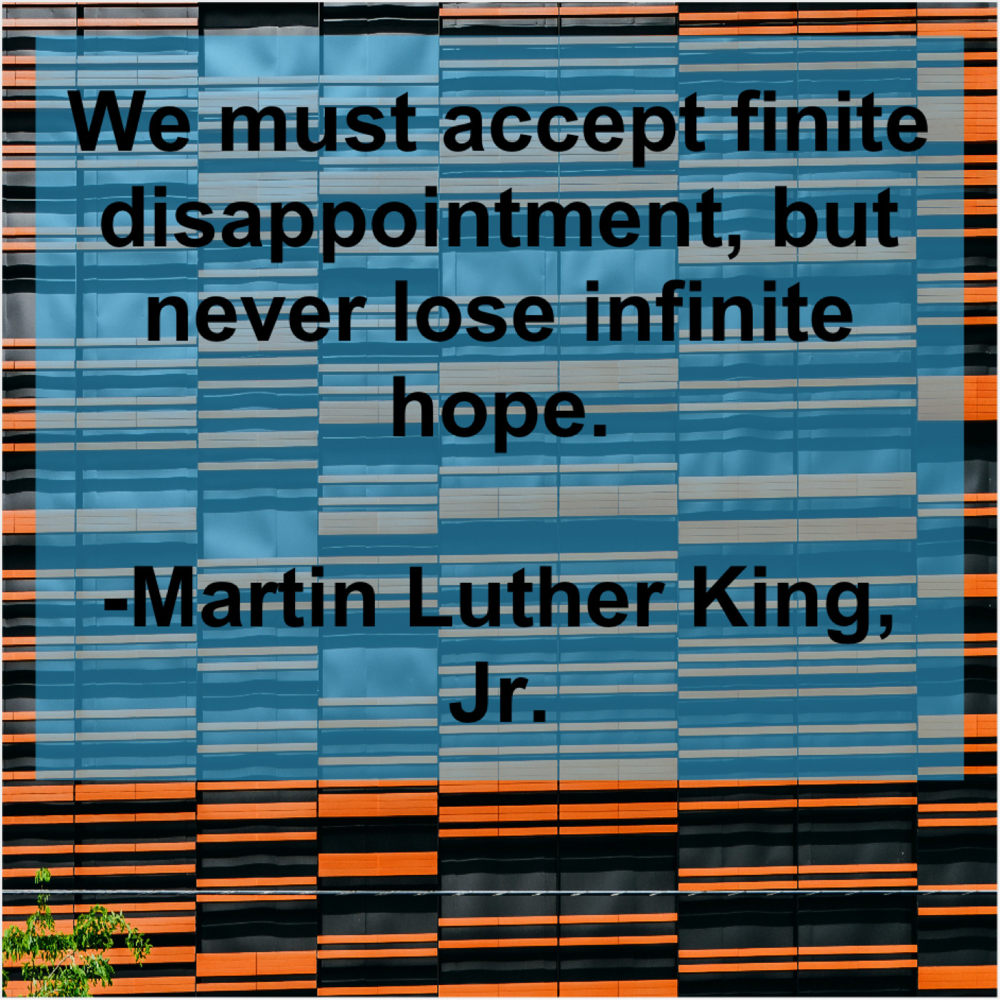 Martin Luther King, Jr. Martin Luther King, Jr. – We must accept finite disappointment… April 12, 2019 admin “We must accept finite disappointment, but never lose infinite hope.”-Martin Luther King, Jr.