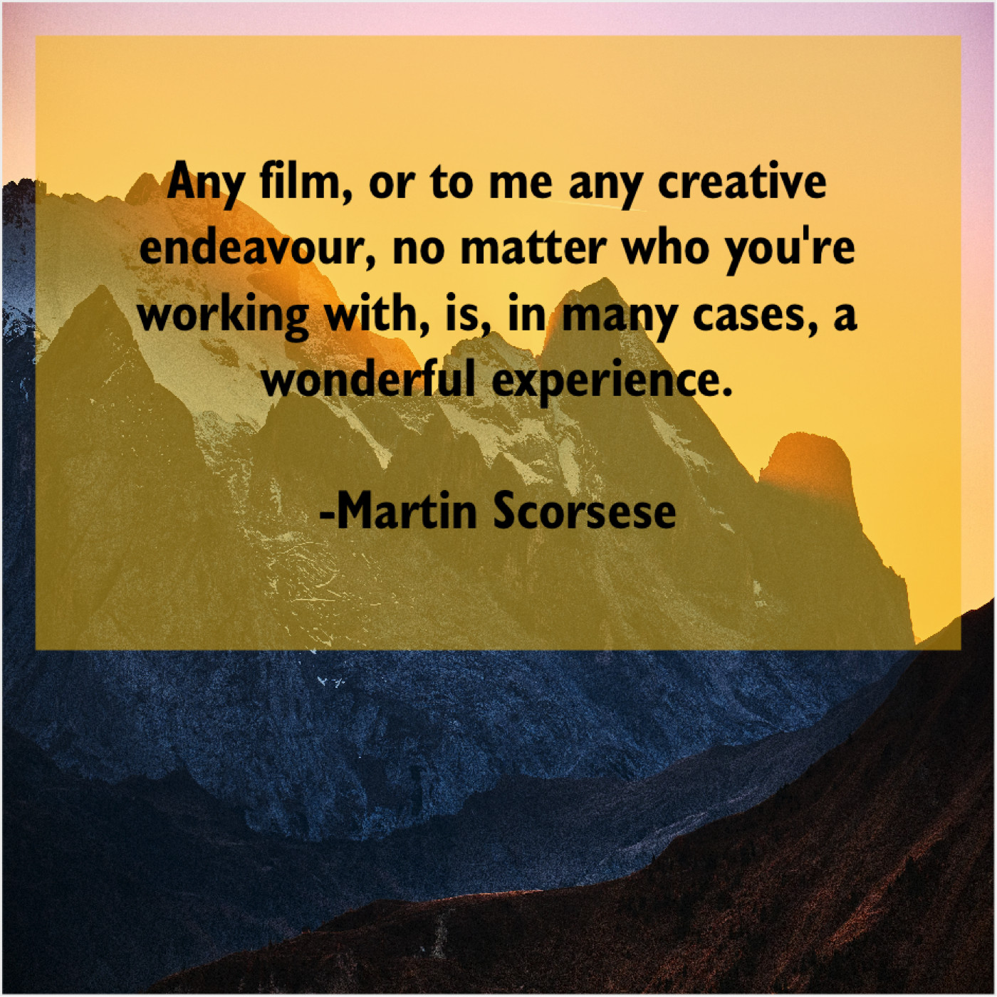 Martin Scorsese Martin Scorsese – Any film, or to me… July 8, 2019 admin “Any film, or to me any creative endeavour, no matter who you’re working with, is, in many cases, a wonderful experience.”-Martin Scorsese