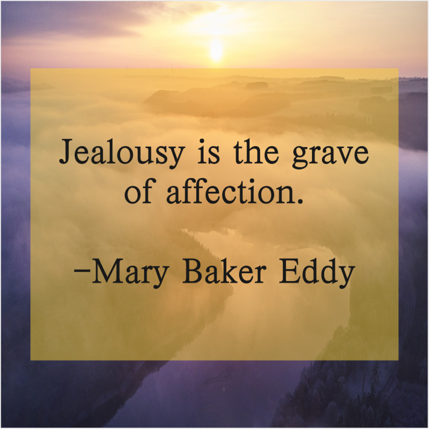 Mary Baker Eddy Mary Baker Eddy – Jealousy is the grave of… December 15, 2018 admin “Jealousy is the grave of affection.”-Mary Baker Eddy
