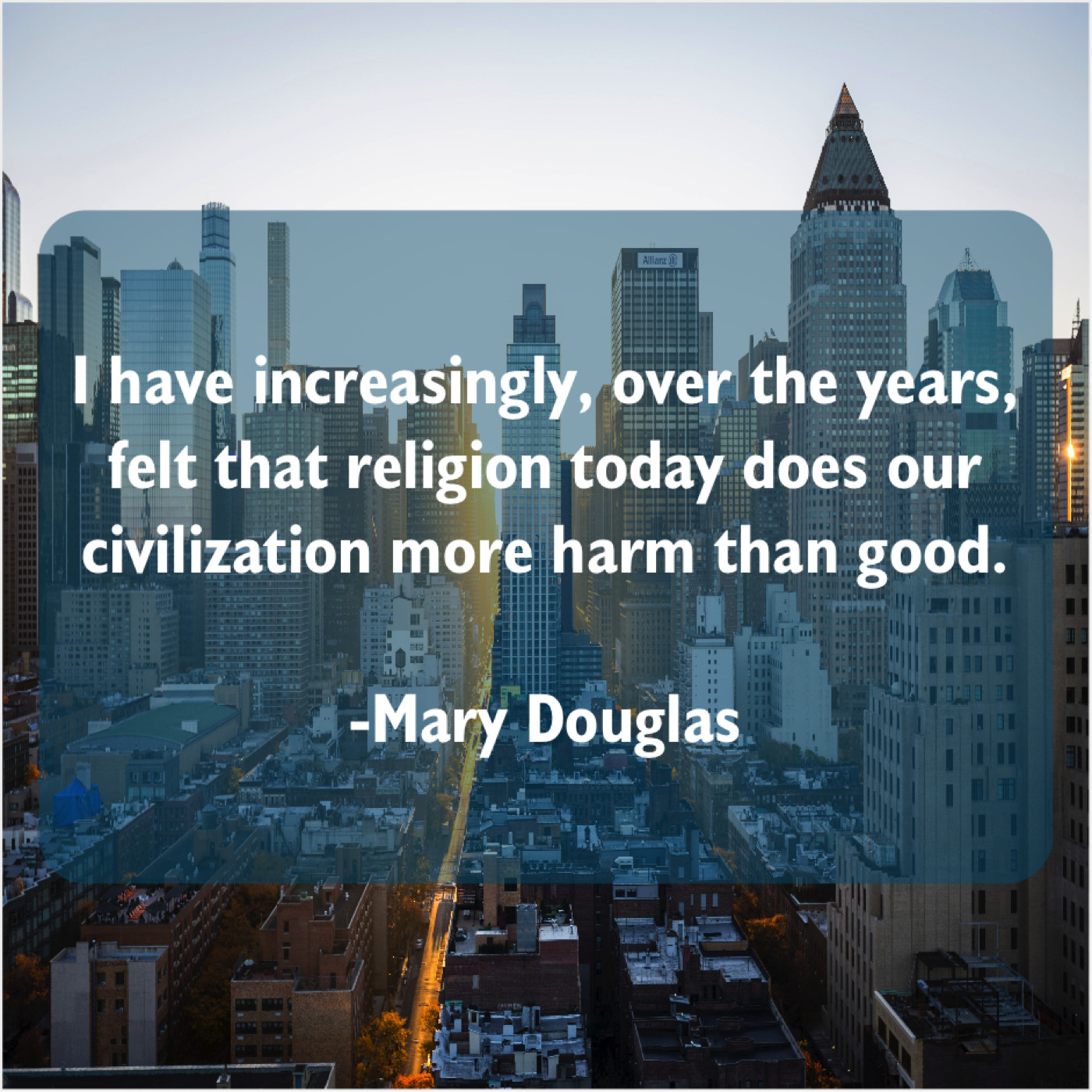 Mary Douglas Mary Douglas – I have increasingly, over the… February 5, 2019 admin “I have increasingly, over the years, felt that religion today does our civilization more harm than good.”-Mary Douglas
