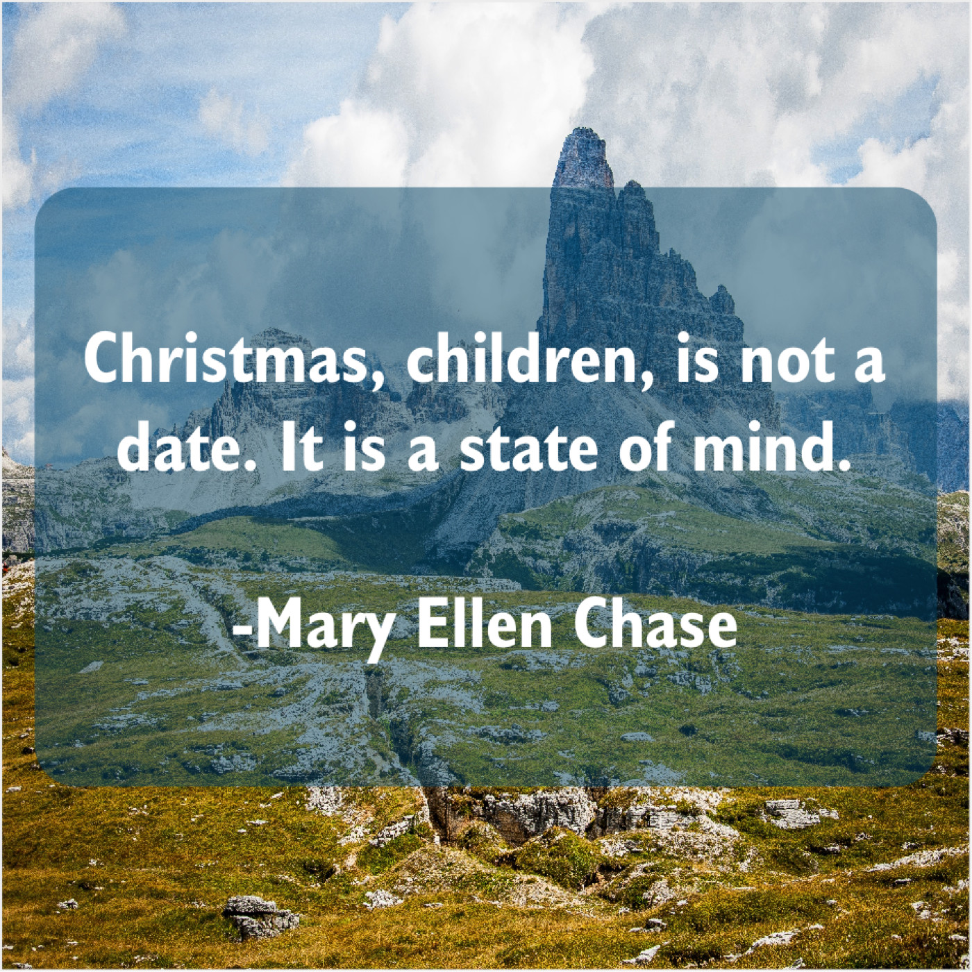 Mary Ellen Chase Mary Ellen Chase – Christmas, children, is not a… November 28, 2018 admin “Christmas, children, is not a date. It is a state of mind.”-Mary Ellen Chase