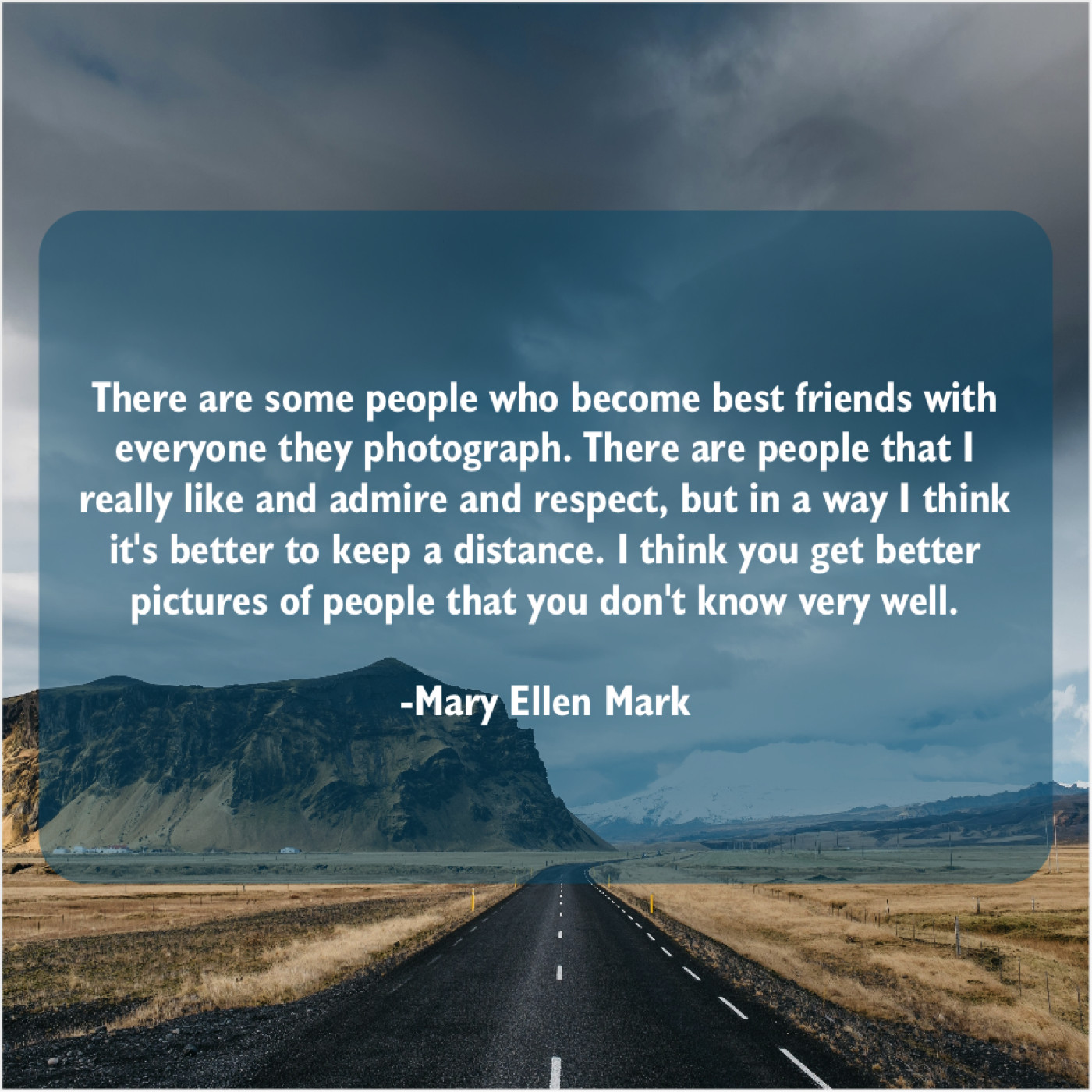 “There are some people who become best friends with everyone they photograph. There are people that I really like and admire and respect, but in a way I think it’s better to keep a distance. I think you get better pictures of people that you don’t know very well.”