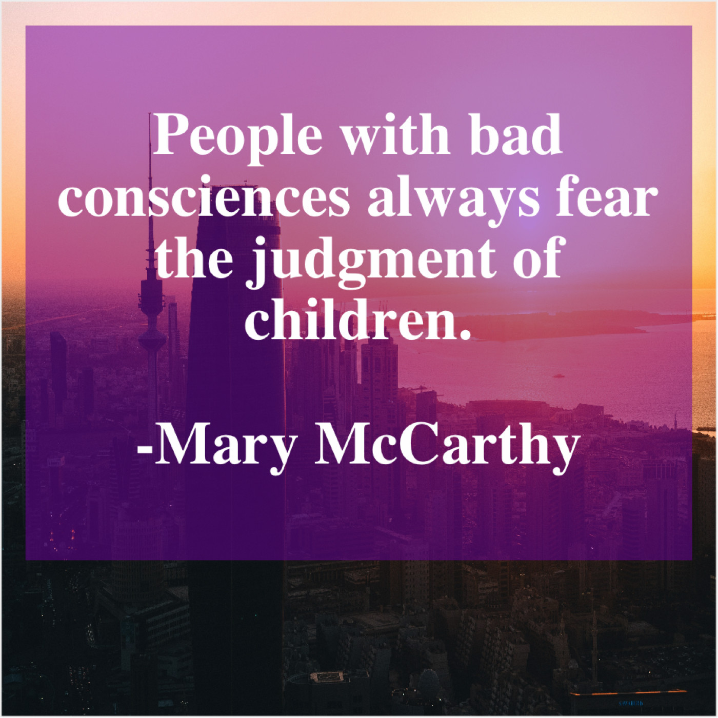 Mary McCarthy Mary McCarthy – People with bad consciences always… August 11, 2019 admin “People with bad consciences always fear the judgment of children.”-Mary McCarthy