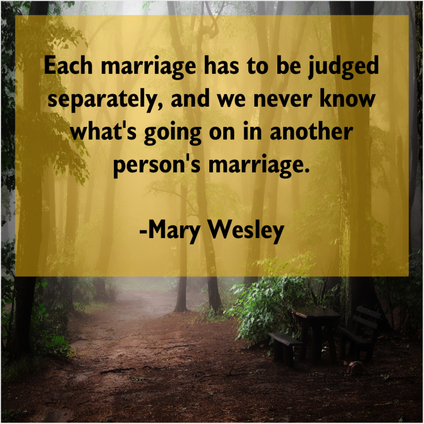 Mary Wesley Mary Wesley – Each marriage has to be… April 30, 2019 admin “Each marriage has to be judged separately, and we never know what’s going on in another person’s marriage.”-Mary Wesley
