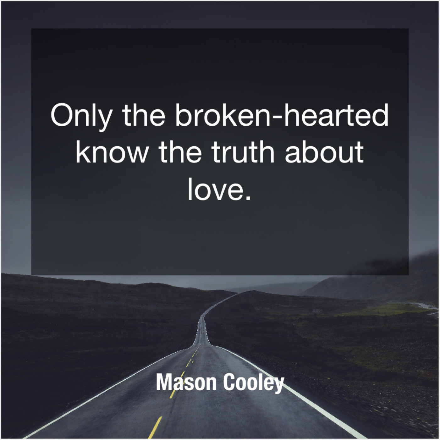 Mason Cooley Mason Cooley – Only the broken-hearted know… June 7, 2019 admin “Only the broken-hearted know the truth about love.”-Mason Cooley