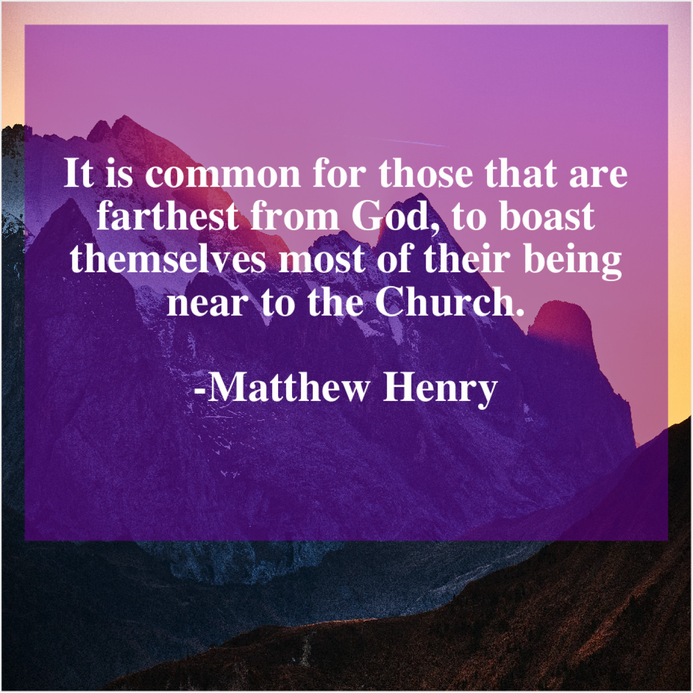 Matthew Henry Matthew Henry – It is common for those… September 30, 2019 admin “It is common for those that are farthest from God, to boast themselves most of their being near to the Church.”-Matthew Henry