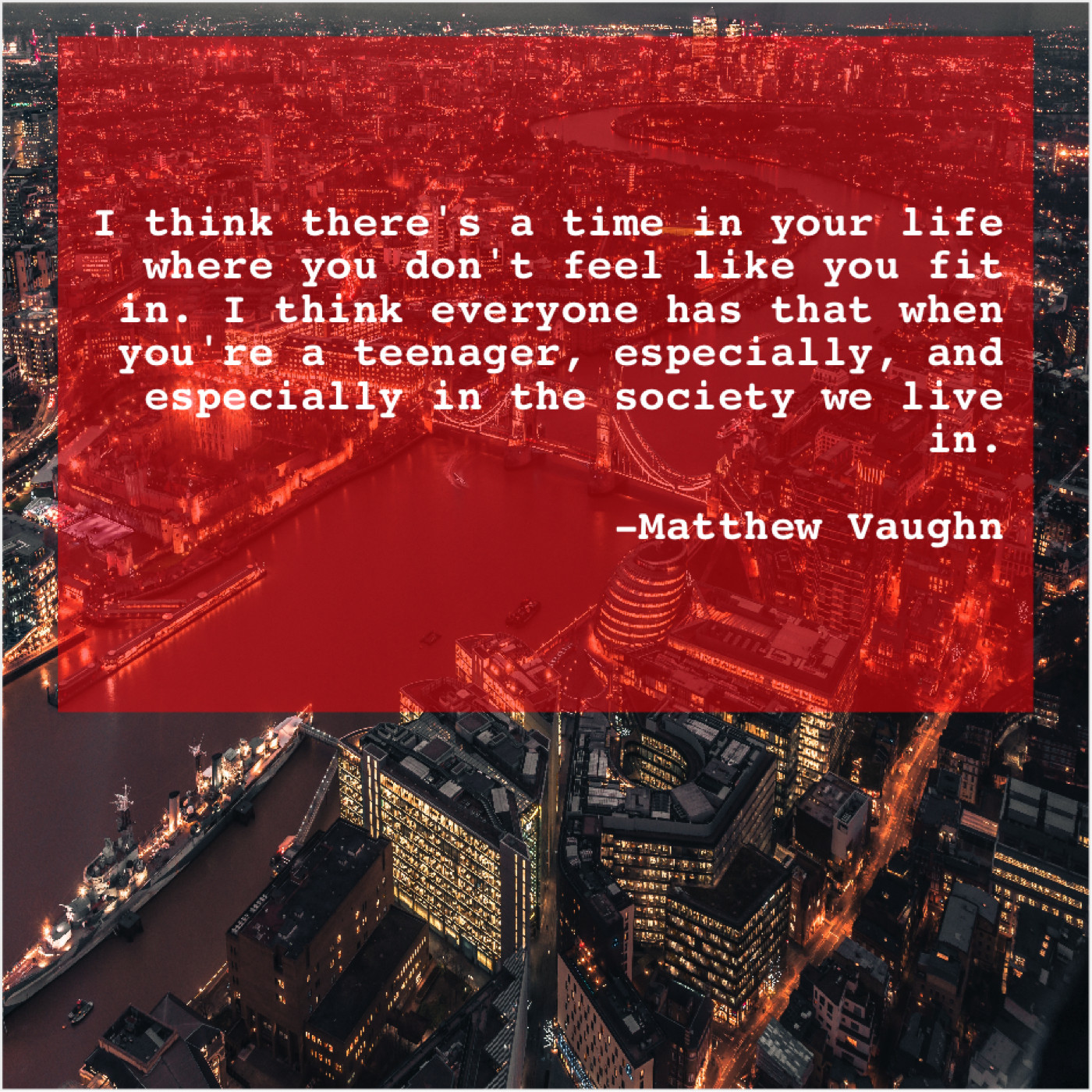 Matthew Vaughn Matthew Vaughn – I think there’s a time… April 14, 2019 admin “I think there’s a time in your life where you don’t feel like you fit in. I think everyone has that when you’re a teenager, especially, and especially in the society we live in.”-Matthew Vaughn