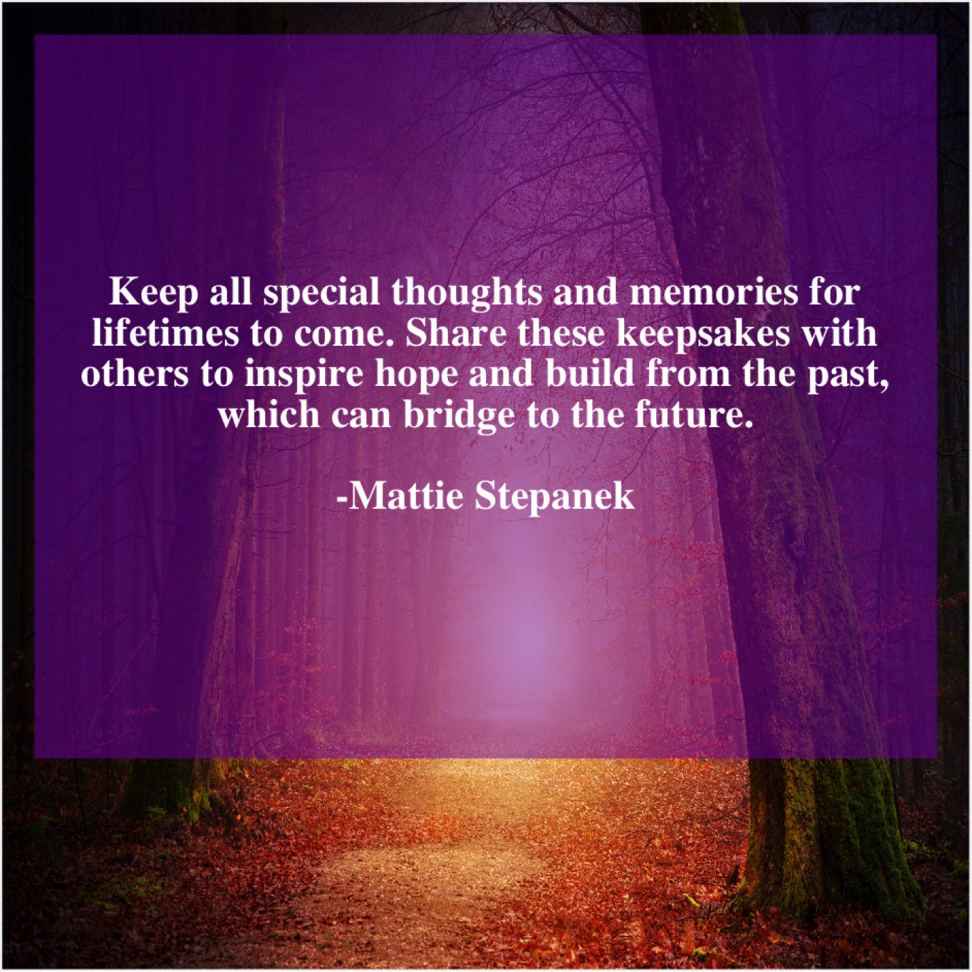 Mattie Stepanek Mattie Stepanek – Keep all special thoughts and… January 23, 2019 admin “Keep all special thoughts and memories for lifetimes to come. Share these keepsakes with others to inspire hope and build from the past, which can bridge to the future.”-Mattie Stepanek