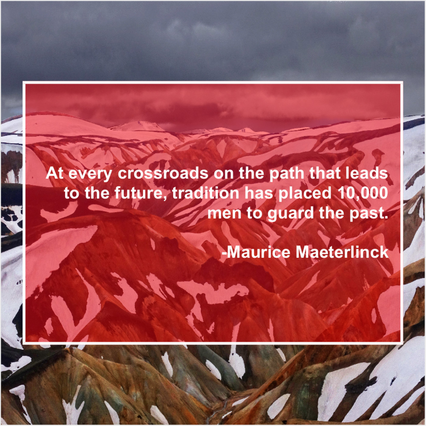Maurice Maeterlinck Maurice Maeterlinck – At every crossroads on the… February 7, 2019 admin “At every crossroads on the path that leads to the future, tradition has placed 10,000 men to guard the past.”-Maurice Maeterlinck
