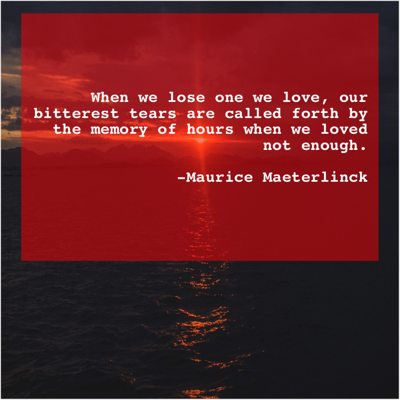 Maurice Maeterlinck Maurice Maeterlinck – When we lose one we… June 18, 2019 admin “When we lose one we love, our bitterest tears are called forth by the memory of hours when we loved not enough.”-Maurice Maeterlinck