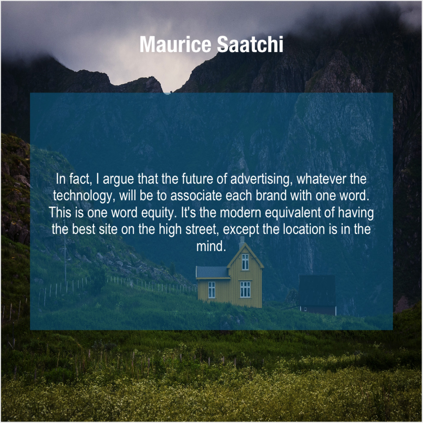 “In fact, I argue that the future of advertising, whatever the technology, will be to associate each brand with one word. This is one word equity. It’s the modern equivalent of having the best site on the high street, except the location is in the mind.”
