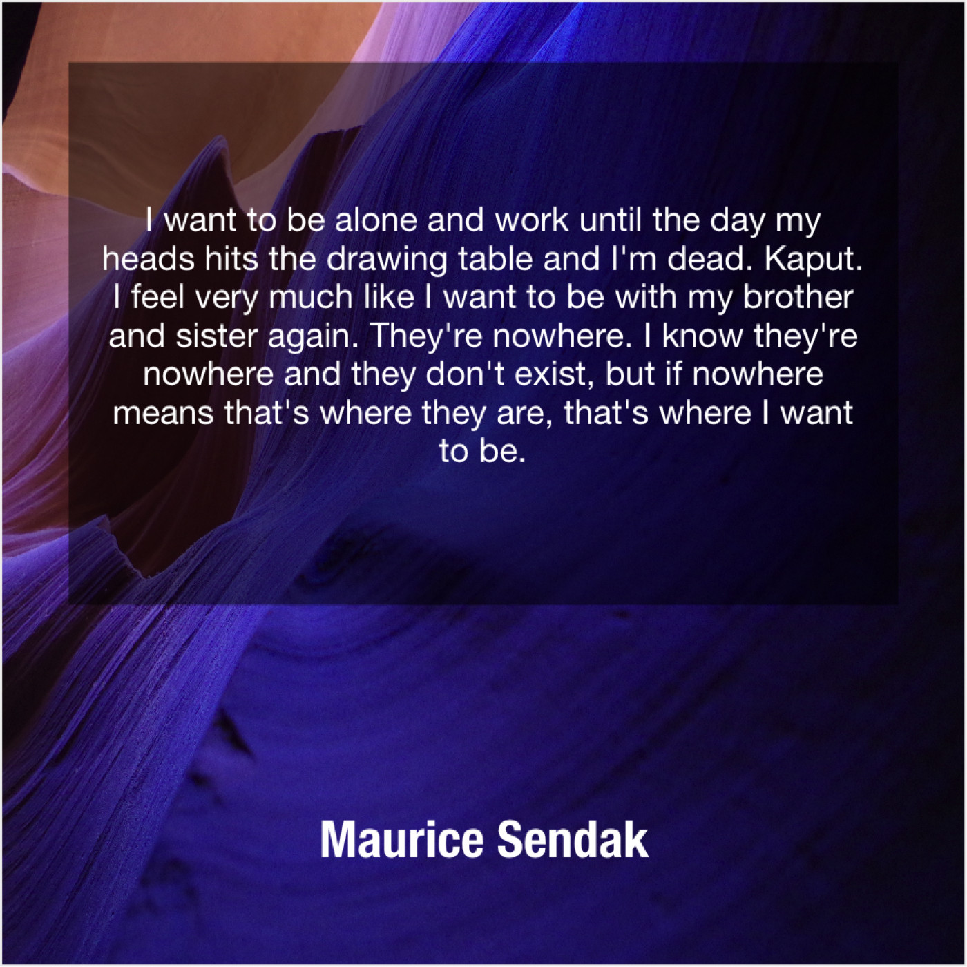 “I want to be alone and work until the day my heads hits the drawing table and I’m dead. Kaput. I feel very much like I want to be with my brother and sister again. They’re nowhere. I know they’re nowhere and they don’t exist, but if nowhere means that’s where they are, that’s where I want to be.”