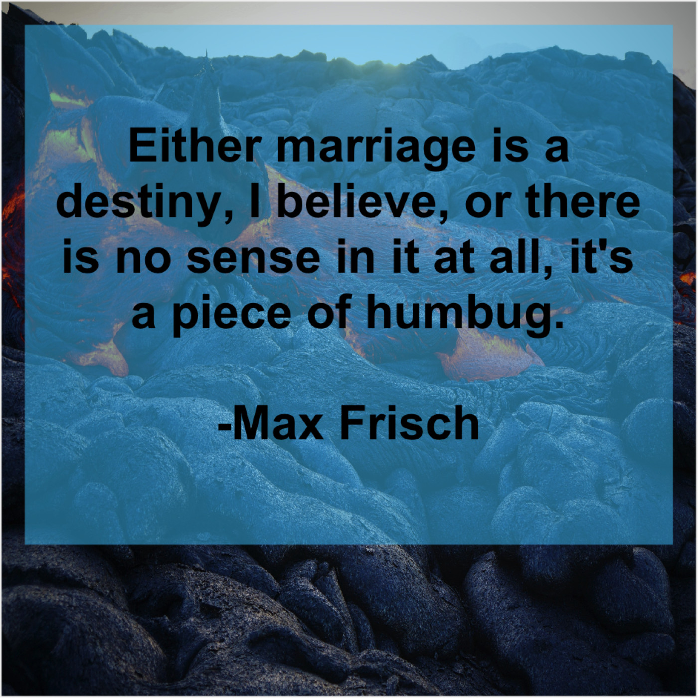 Max Frisch Max Frisch – Either marriage is a destiny… March 26, 2019 admin “Either marriage is a destiny, I believe, or there is no sense in it at all, it’s a piece of humbug.”-Max Frisch