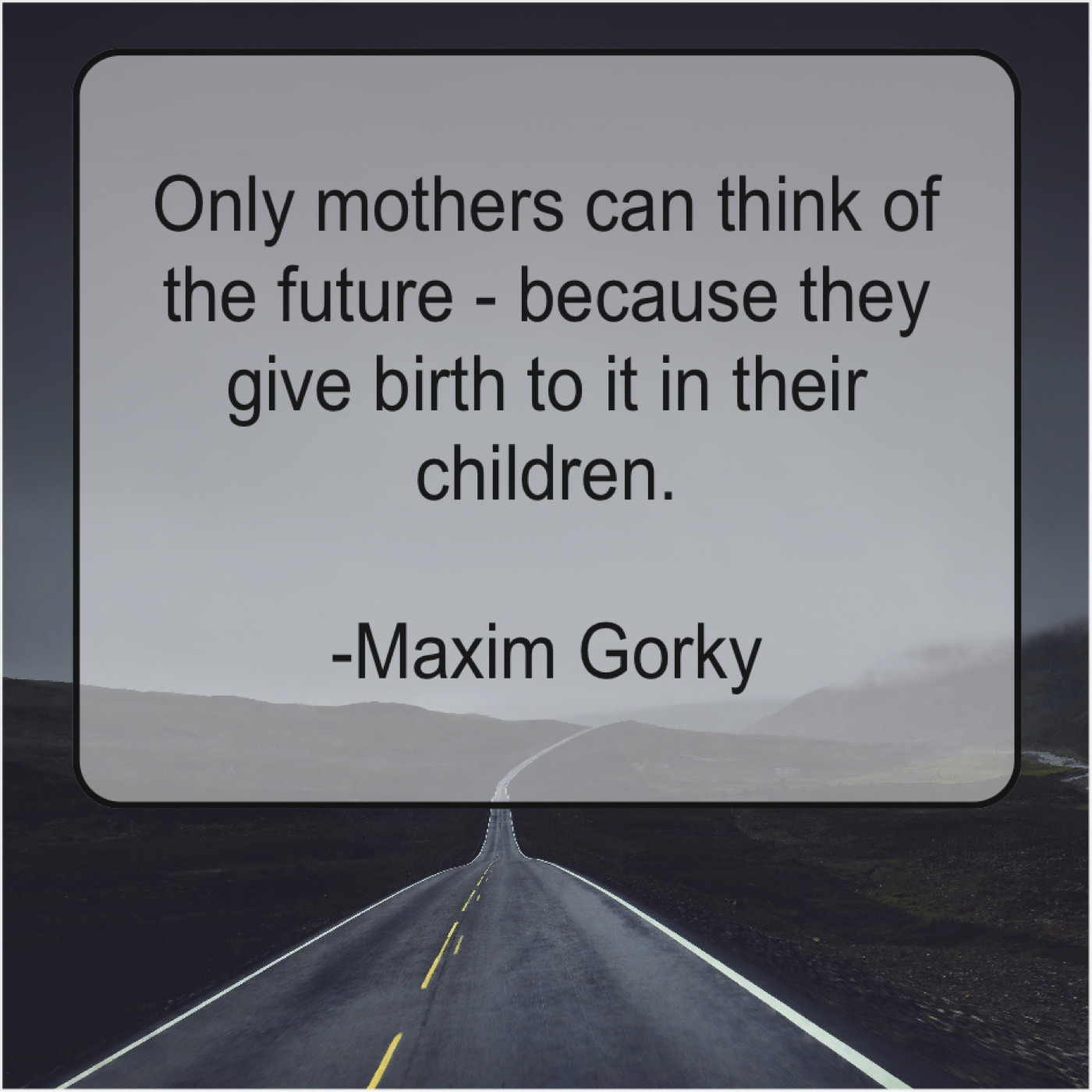 Maxim Gorky Maxim Gorky – Only mothers can think of… June 9, 2019 admin “Only mothers can think of the future – because they give birth to it in their children.”-Maxim Gorky