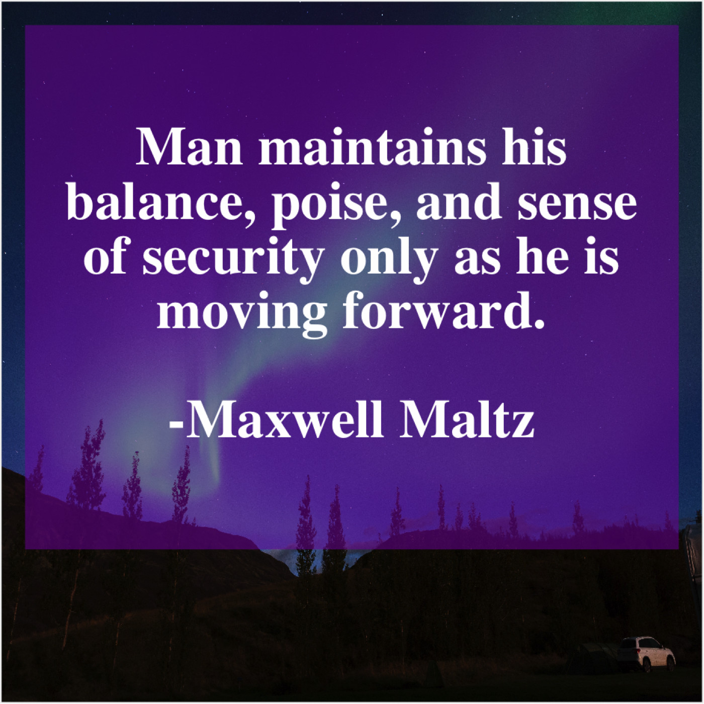 Maxwell Maltz Maxwell Maltz – Man maintains his balance, poise… January 26, 2019 admin “Man maintains his balance, poise, and sense of security only as he is moving forward.”-Maxwell Maltz