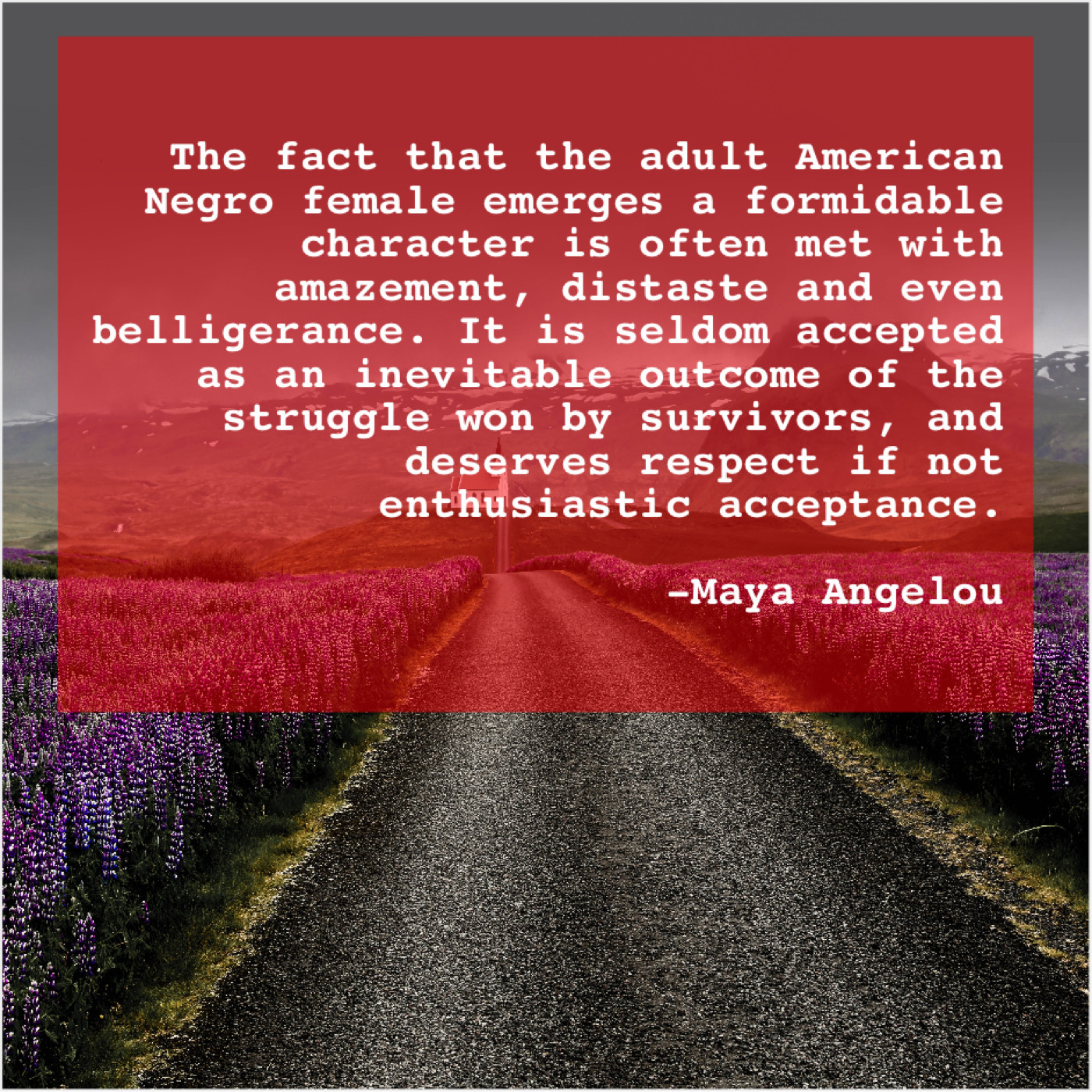 “The fact that the adult American Negro female emerges a formidable character is often met with amazement, distaste and even belligerance. It is seldom accepted as an inevitable outcome of the struggle won by survivors, and deserves respect if not enthusiastic acceptance.”