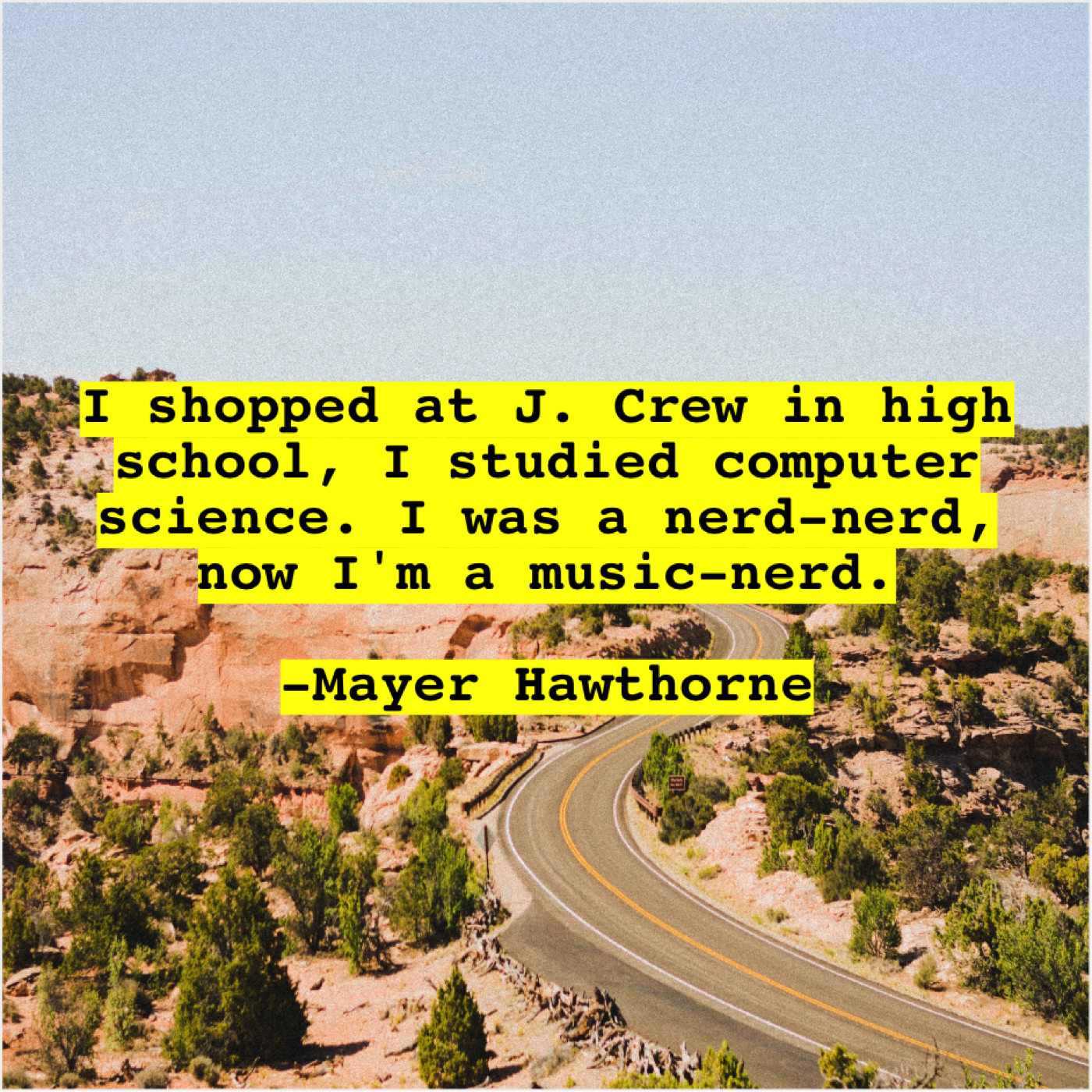 Mayer Hawthorne Mayer Hawthorne – I shopped at J. Crew… December 25, 2018 admin “I shopped at J. Crew in high school, I studied computer science. I was a nerd-nerd, now I’m a music-nerd.”-Mayer Hawthorne
