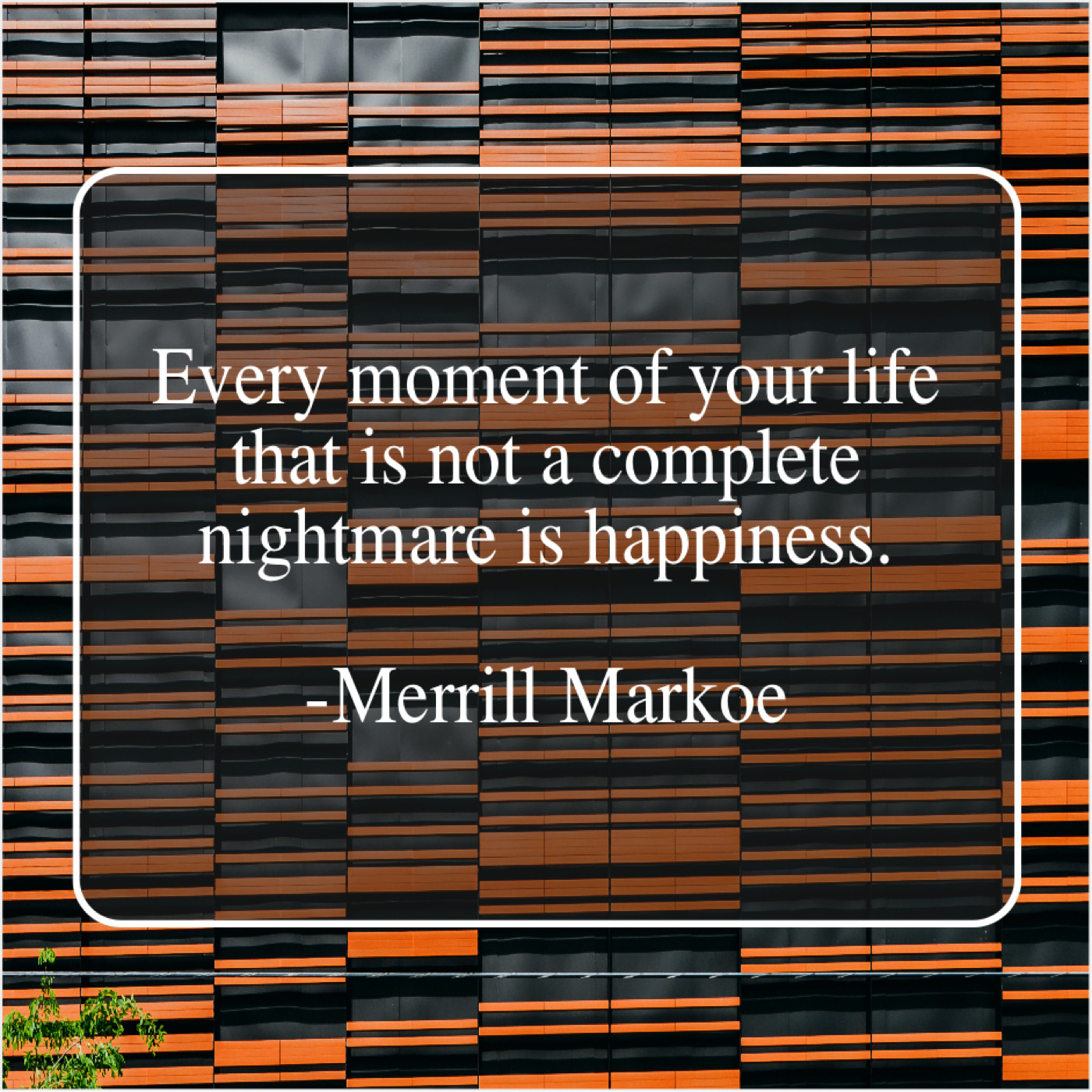 Merrill Markoe Merrill Markoe – Every moment of your life… December 7, 2018 admin “Every moment of your life that is not a complete nightmare is happiness.”-Merrill Markoe
