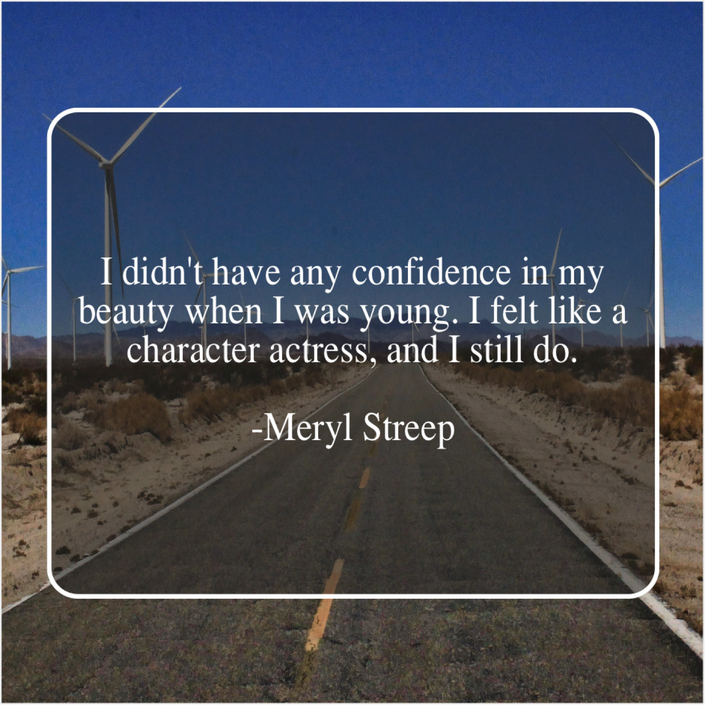 Meryl Streep Meryl Streep – I didn’t have any confidence… November 26, 2018 admin “I didn’t have any confidence in my beauty when I was young. I felt like a character actress, and I still do.”-Meryl Streep