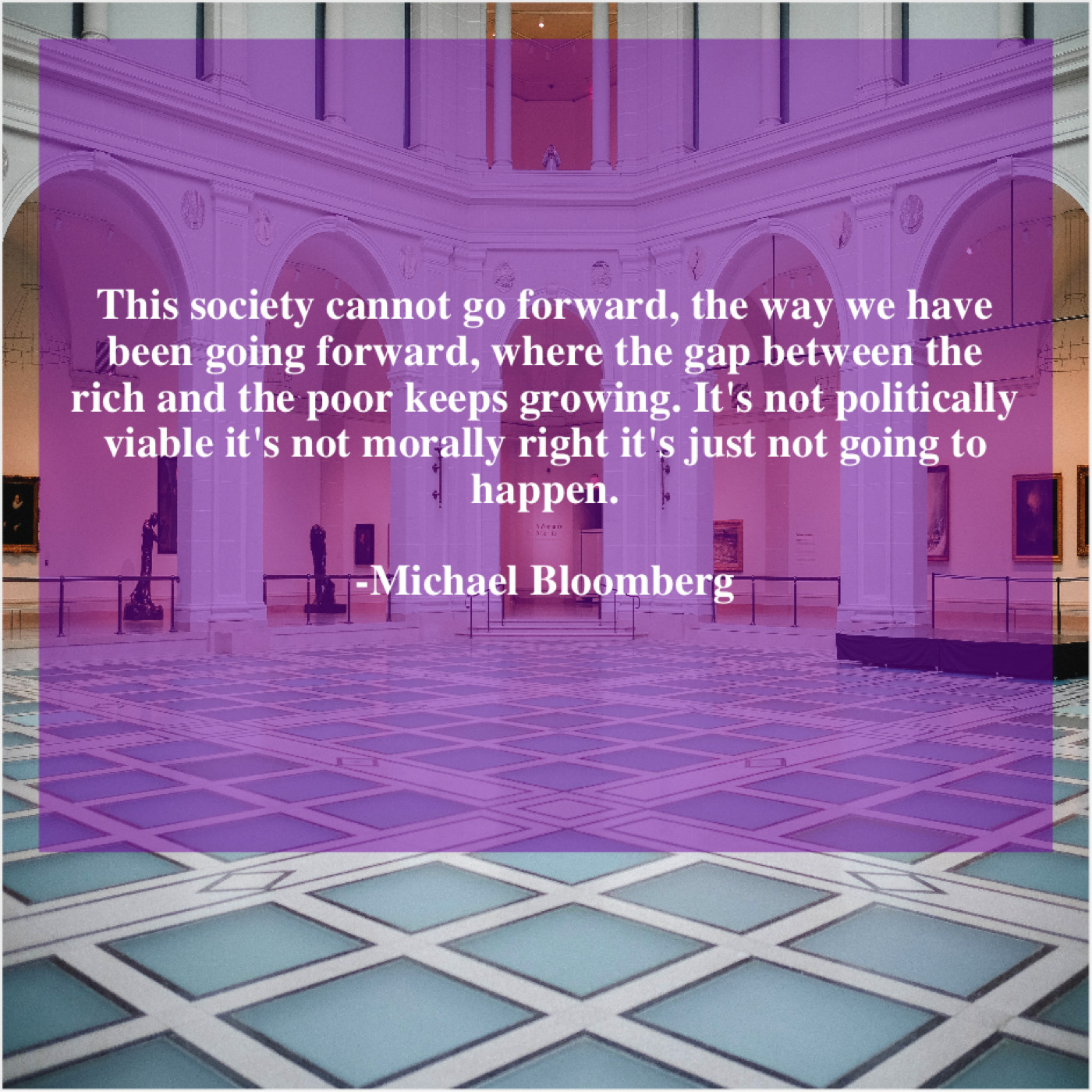 Michael Bloomberg Michael Bloomberg – This society cannot go forward… July 27, 2019 admin “This society cannot go forward, the way we have been going forward, where the gap between the rich and the poor keeps growing. It’s not politically viable it’s not morally right it’s just not going to happen.”-Michael Bloomberg