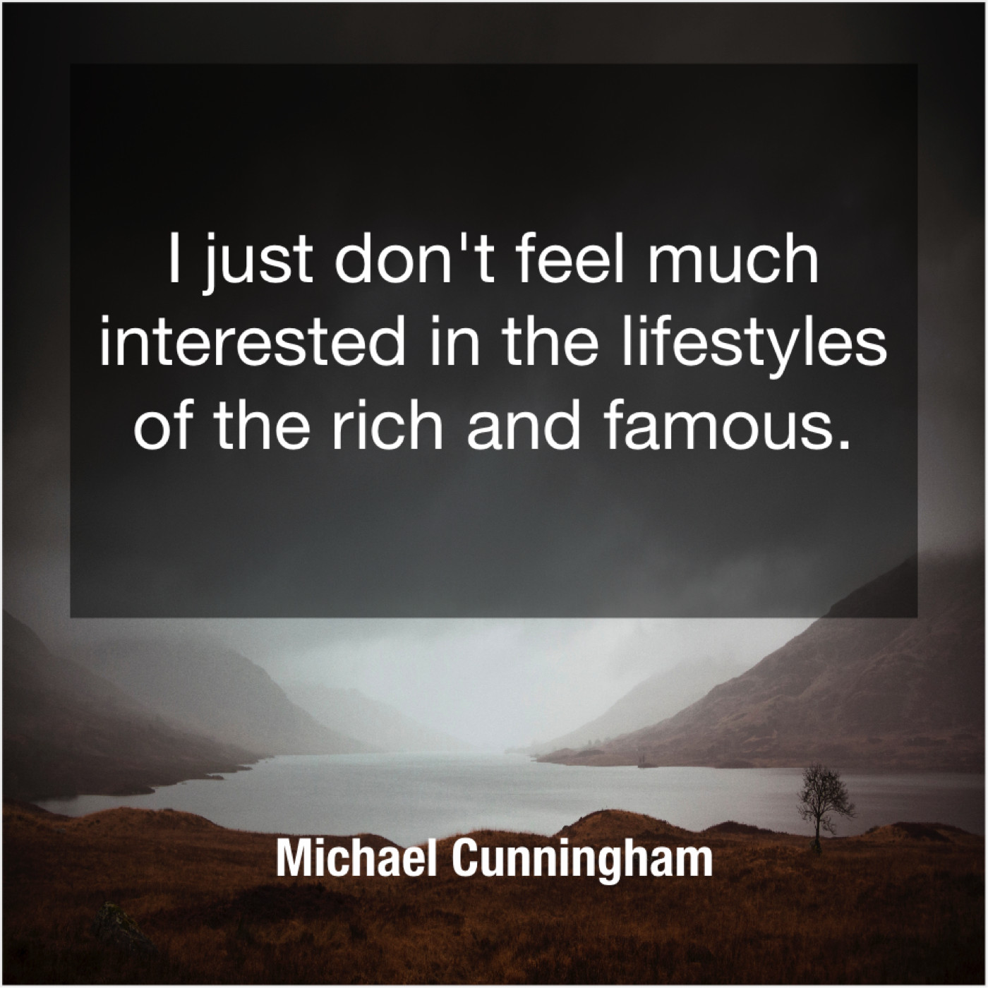 Michael Cunningham Michael Cunningham – I just don’t feel much… July 9, 2019 admin “I just don’t feel much interested in the lifestyles of the rich and famous.”-Michael Cunningham