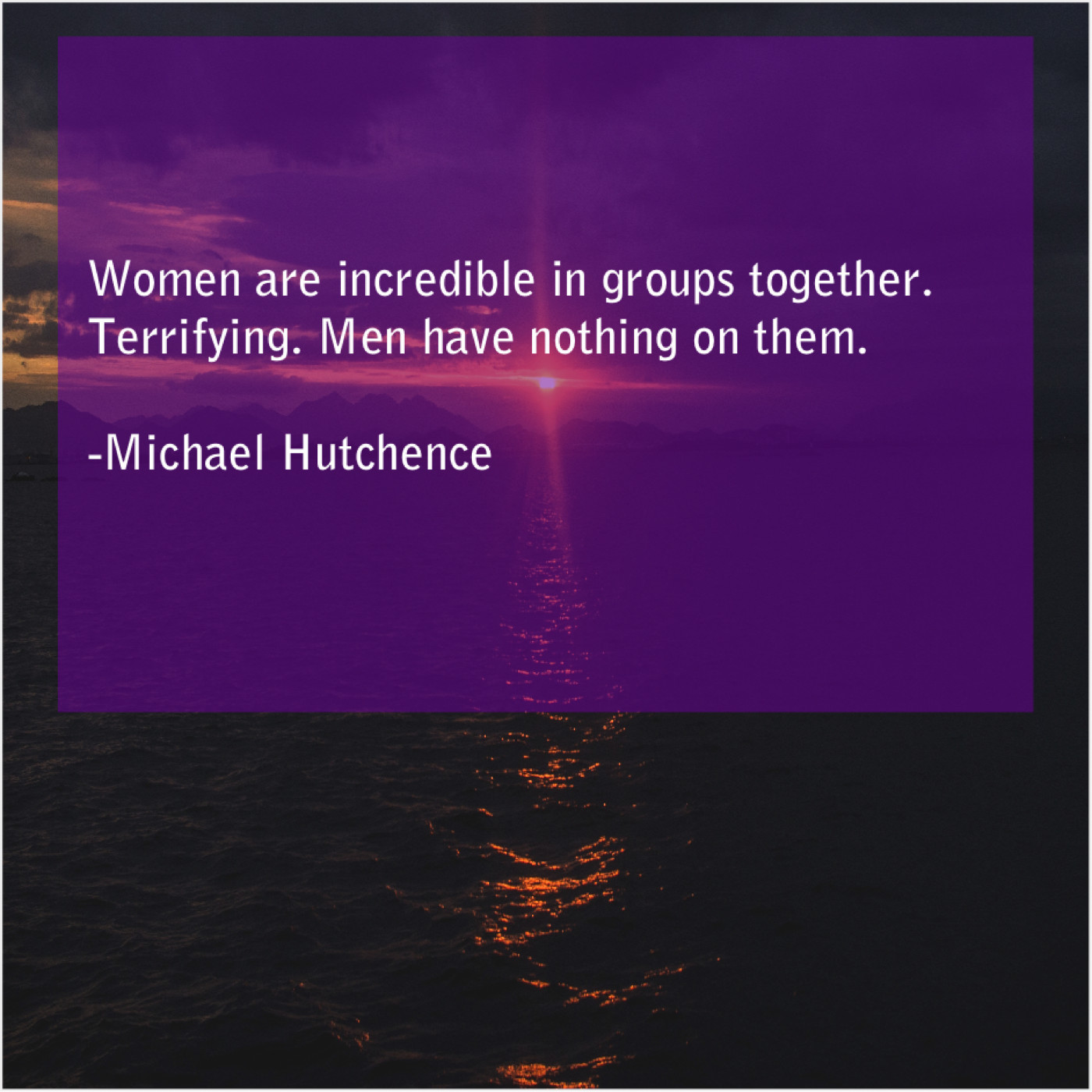Michael Hutchence Michael Hutchence – Women are incredible in groups… November 21, 2018 admin “Women are incredible in groups together. Terrifying. Men have nothing on them.”-Michael Hutchence