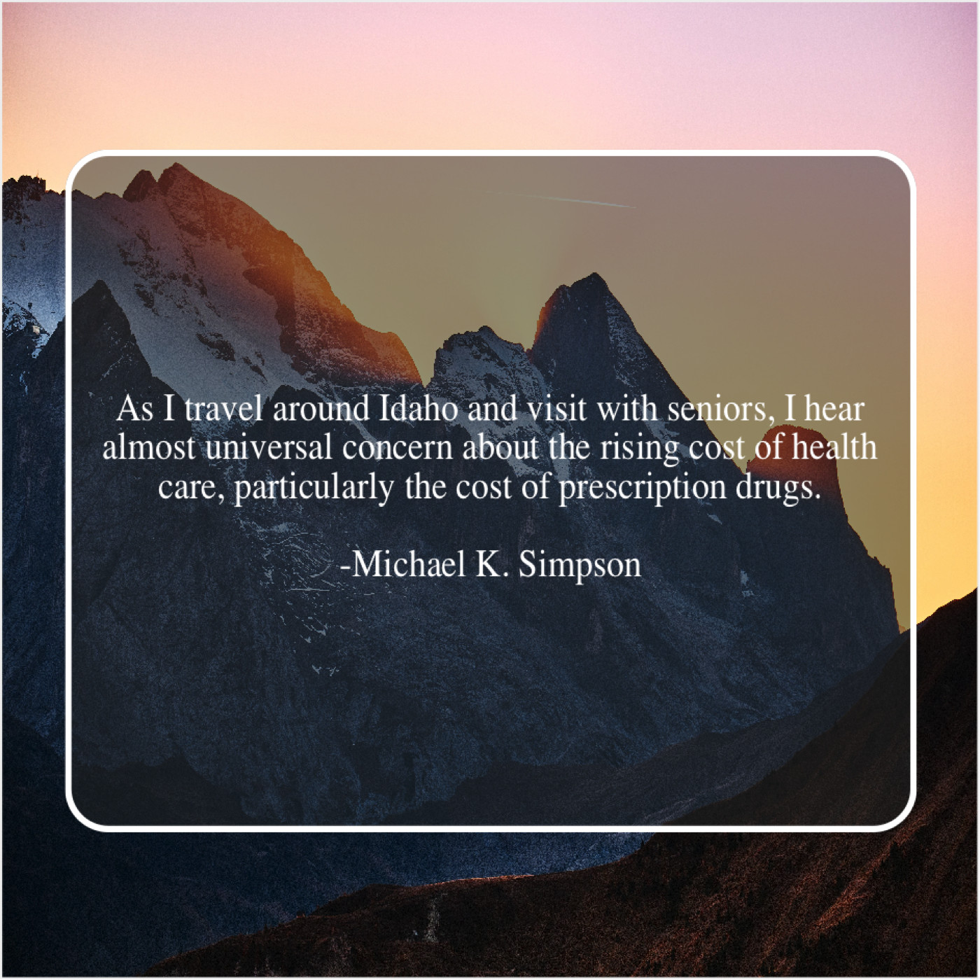 Michael K. Simpson Michael K. Simpson – As I travel around Idaho… June 22, 2019 admin “As I travel around Idaho and visit with seniors, I hear almost universal concern about the rising cost of health care, particularly the cost of prescription drugs.”-Michael K. Simpson
