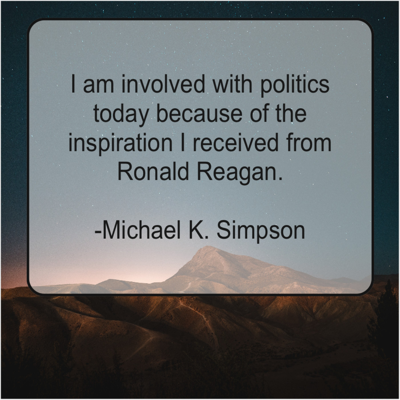 Michael K. Simpson Michael K. Simpson – I am involved with politics… June 19, 2019 admin “I am involved with politics today because of the inspiration I received from Ronald Reagan.”-Michael K. Simpson