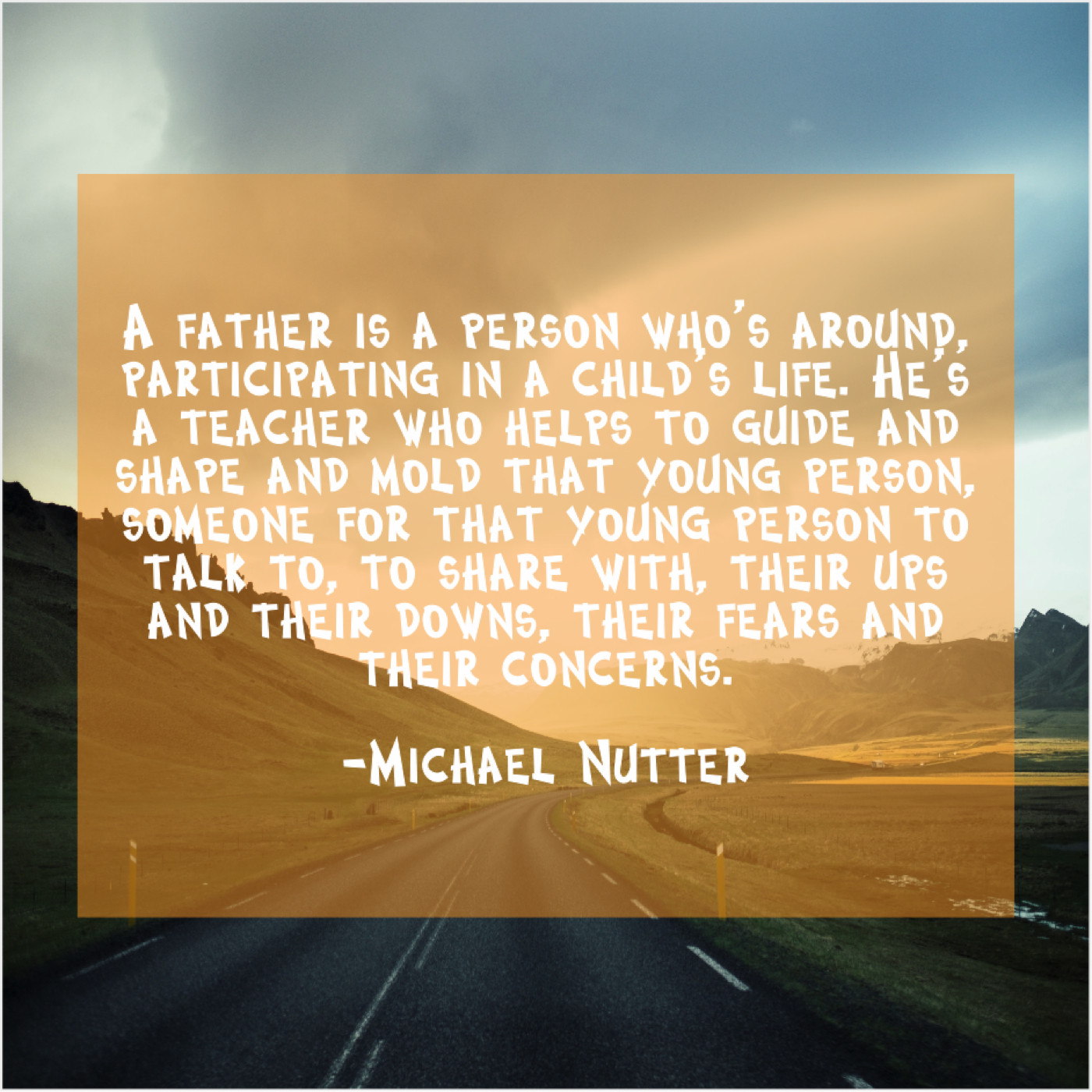 “A father is a person who’s around, participating in a child’s life. He’s a teacher who helps to guide and shape and mold that young person, someone for that young person to talk to, to share with, their ups and their downs, their fears and their concerns.”