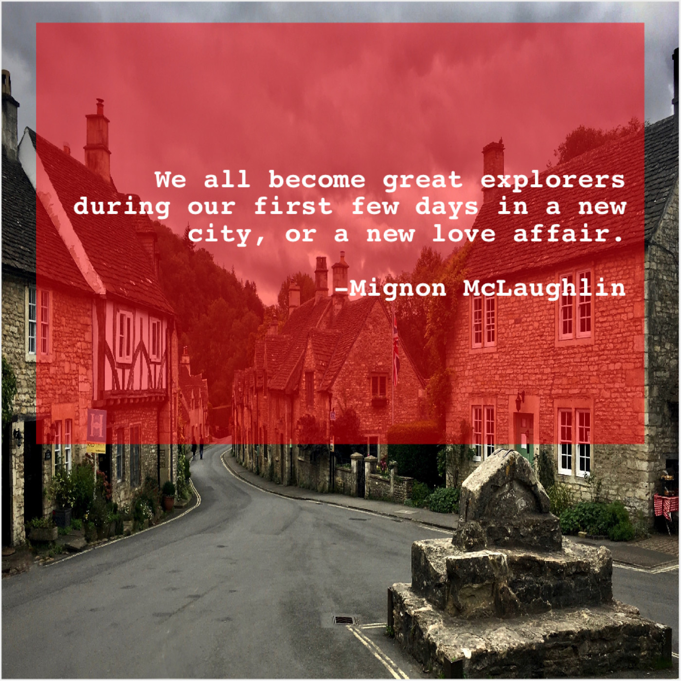 Mignon McLaughlin Mignon McLaughlin – We all become great explorers… March 8, 2019 admin “We all become great explorers during our first few days in a new city, or a new love affair.”-Mignon McLaughlin