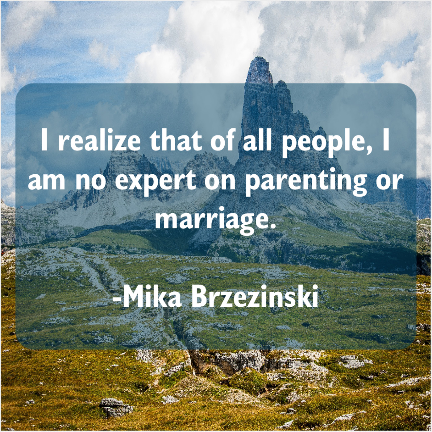 Mika Brzezinski Mika Brzezinski – I realize that of all… June 14, 2019 admin “I realize that of all people, I am no expert on parenting or marriage.”-Mika Brzezinski