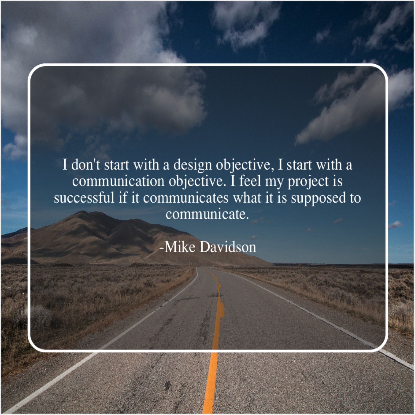 Mike Davidson Mike Davidson – I don’t start with a… May 3, 2019 admin “I don’t start with a design objective, I start with a communication objective. I feel my project is successful if it communicates what it is supposed to communicate.”-Mike Davidson