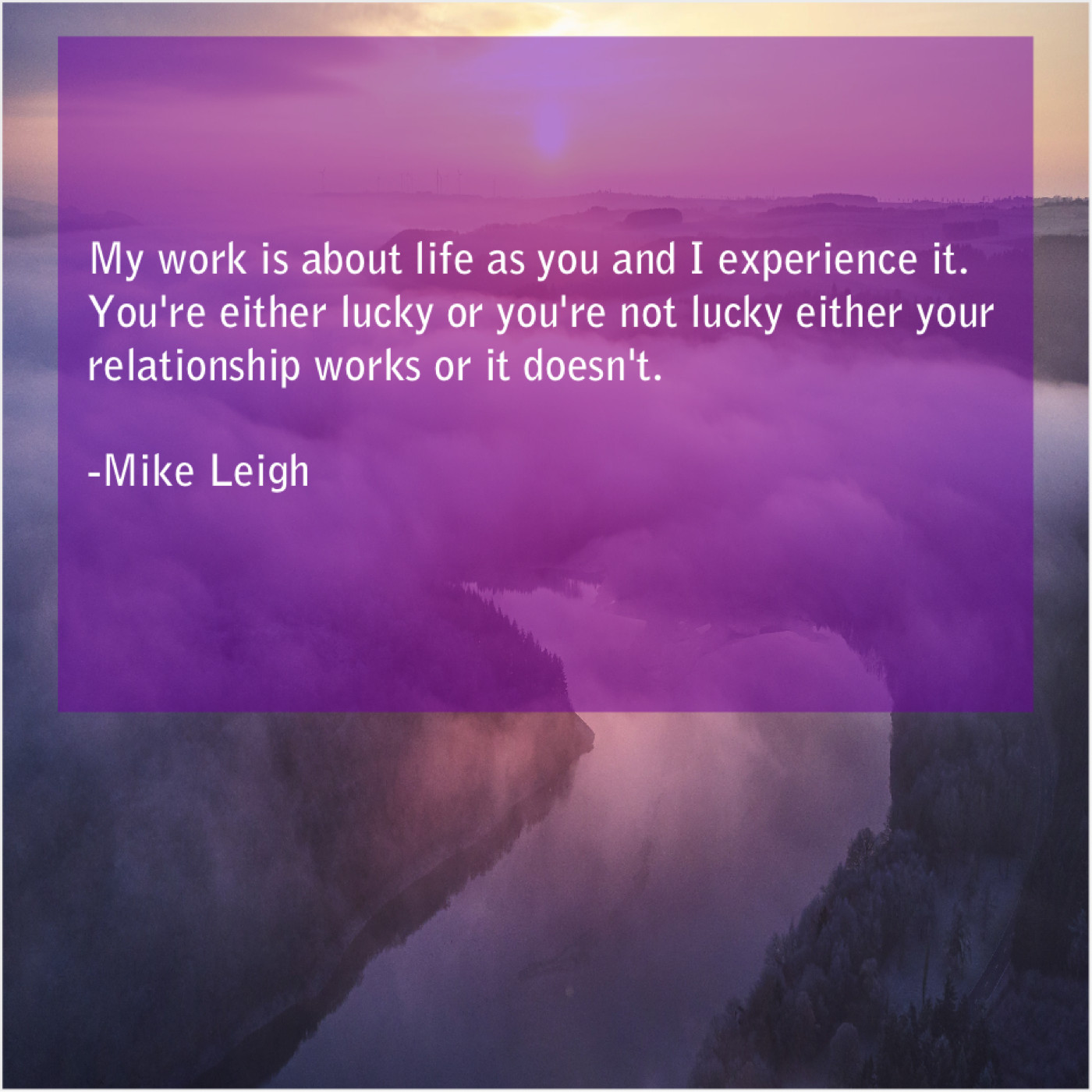 Mike Leigh Mike Leigh – My work is about life… October 9, 2019 admin “My work is about life as you and I experience it. You’re either lucky or you’re not lucky either your relationship works or it doesn’t.”-Mike Leigh