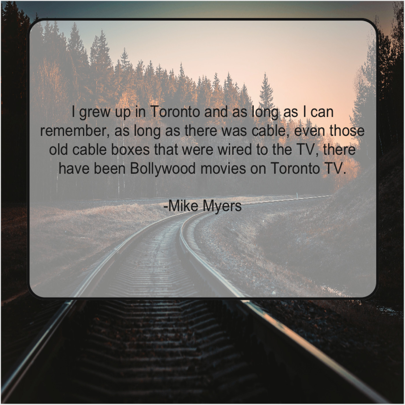 Mike Myers Mike Myers – I grew up in Toronto… January 25, 2019 admin “I grew up in Toronto and as long as I can remember, as long as there was cable, even those old cable boxes that were wired to the TV, there have been Bollywood movies on Toronto TV.”-Mike Myers