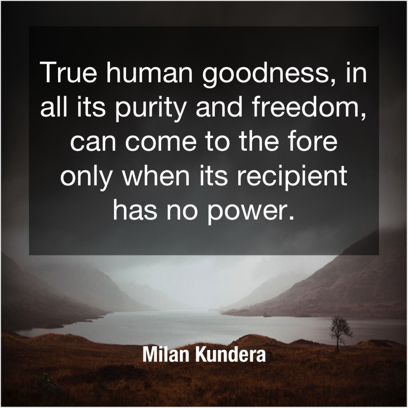 Milan Kundera Milan Kundera – True human goodness, in all… February 13, 2019 admin “True human goodness, in all its purity and freedom, can come to the fore only when its recipient has no power.”-Milan Kundera