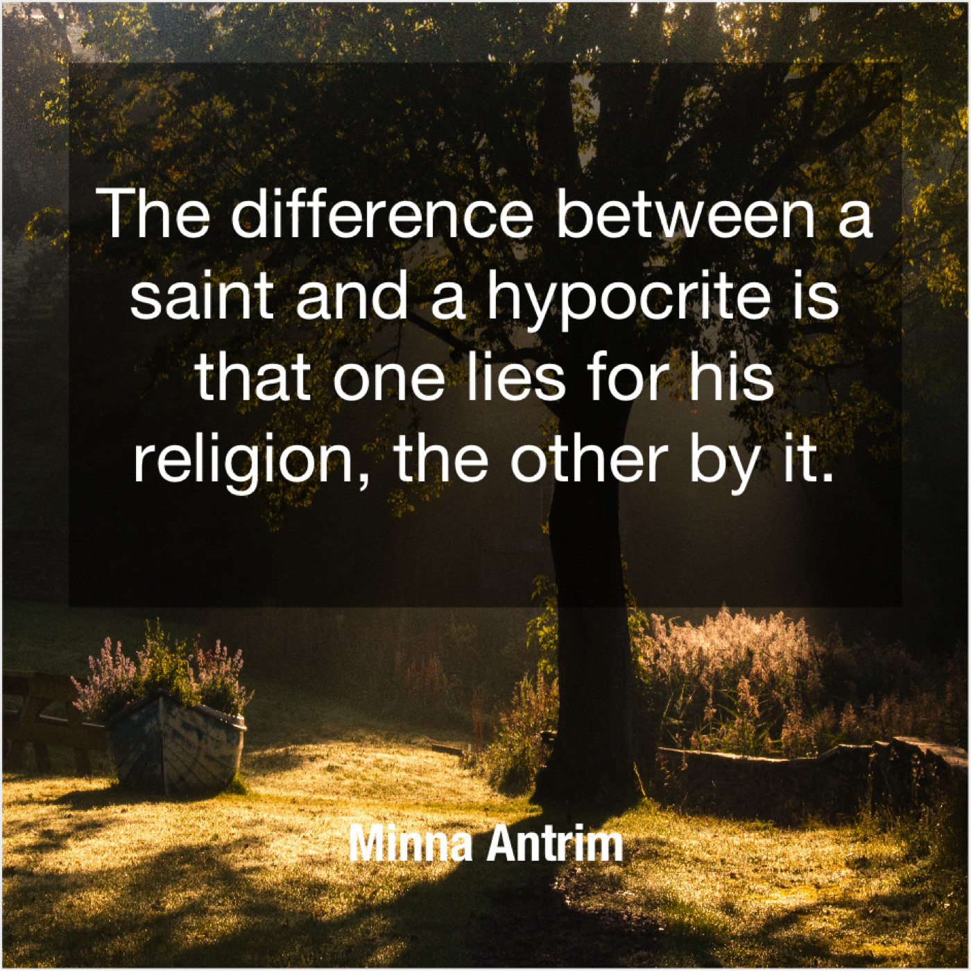 Minna Antrim Minna Antrim – The difference between a saint… November 18, 2018 admin “The difference between a saint and a hypocrite is that one lies for his religion, the other by it.”-Minna Antrim