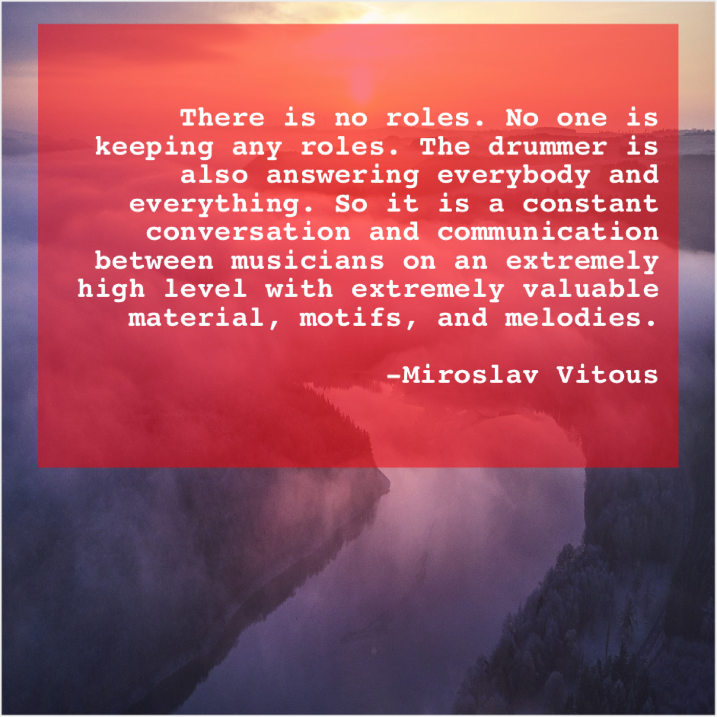 “There is no roles. No one is keeping any roles. The drummer is also answering everybody and everything. So it is a constant conversation and communication between musicians on an extremely high level with extremely valuable material, motifs, and melodies.”