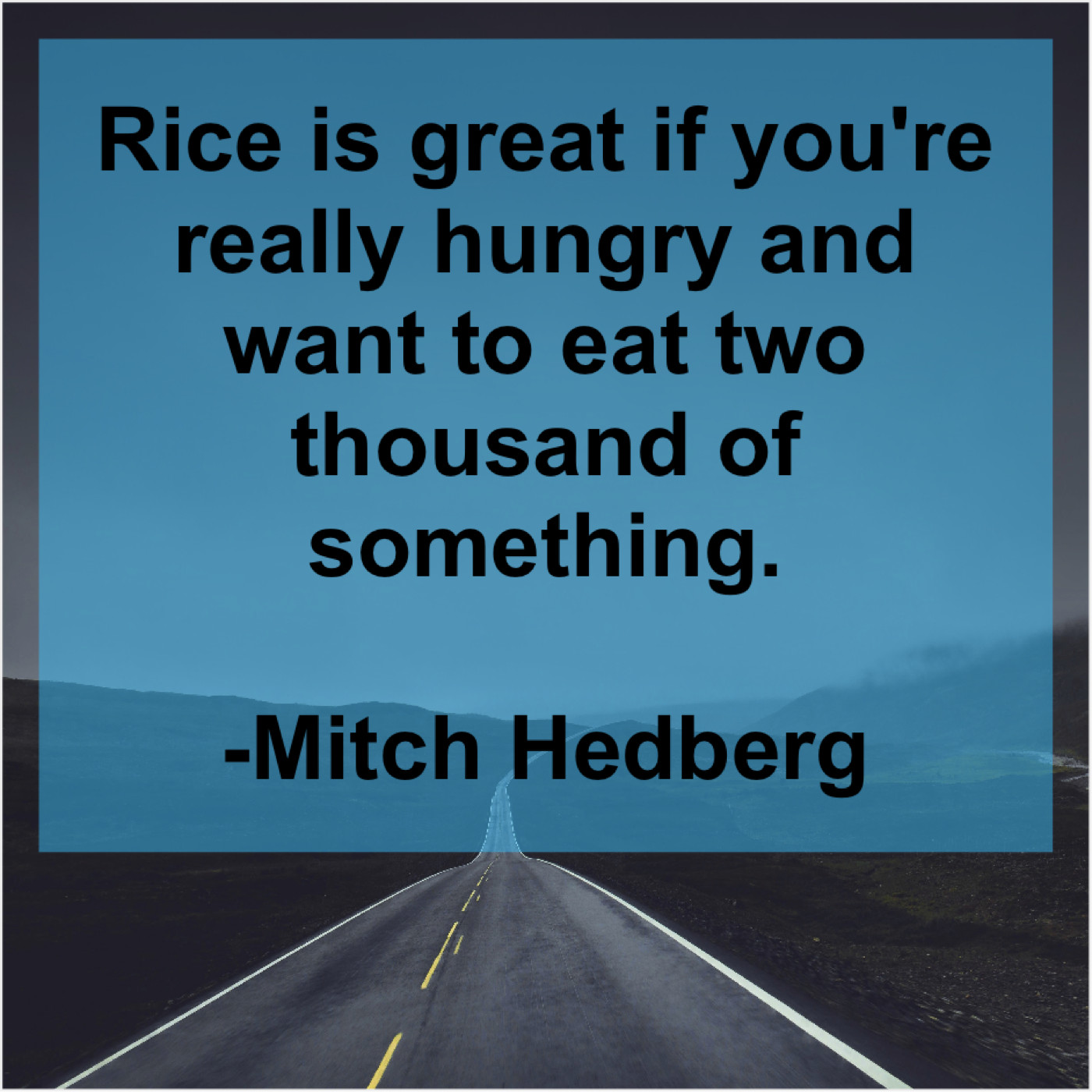 Mitch Hedberg Mitch Hedberg – Rice is great if you’re… April 11, 2019 admin “Rice is great if you’re really hungry and want to eat two thousand of something.”-Mitch Hedberg