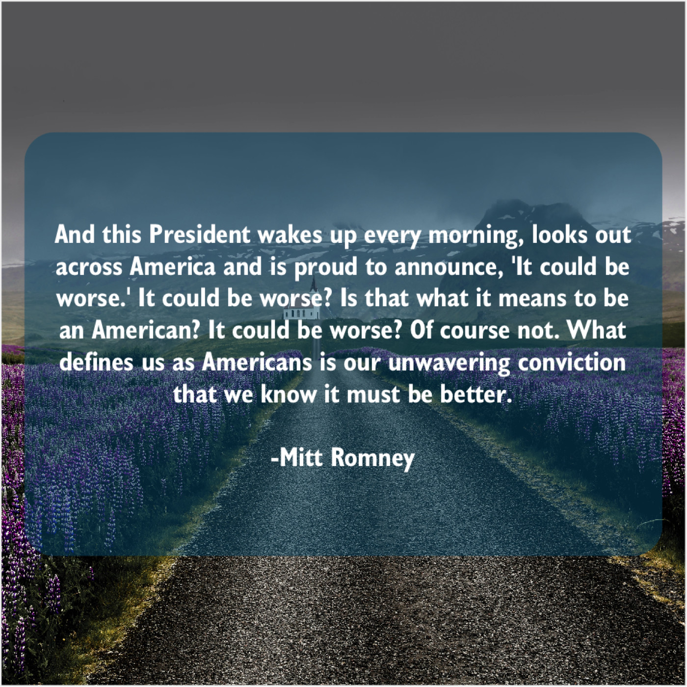 “And this President wakes up every morning, looks out across America and is proud to announce, ‘It could be worse.’ It could be worse? Is that what it means to be an American? It could be worse? Of course not. What defines us as Americans is our unwavering conviction that we know it must be better.”