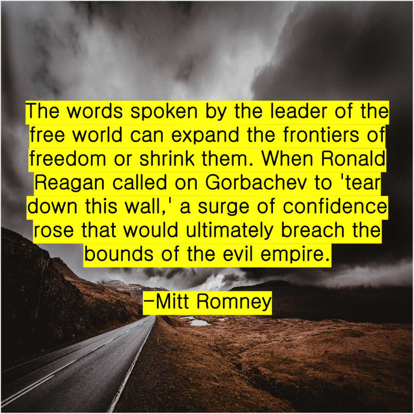 “The words spoken by the leader of the free world can expand the frontiers of freedom or shrink them. When Ronald Reagan called on Gorbachev to ‘tear down this wall,’ a surge of confidence rose that would ultimately breach the bounds of the evil empire.”