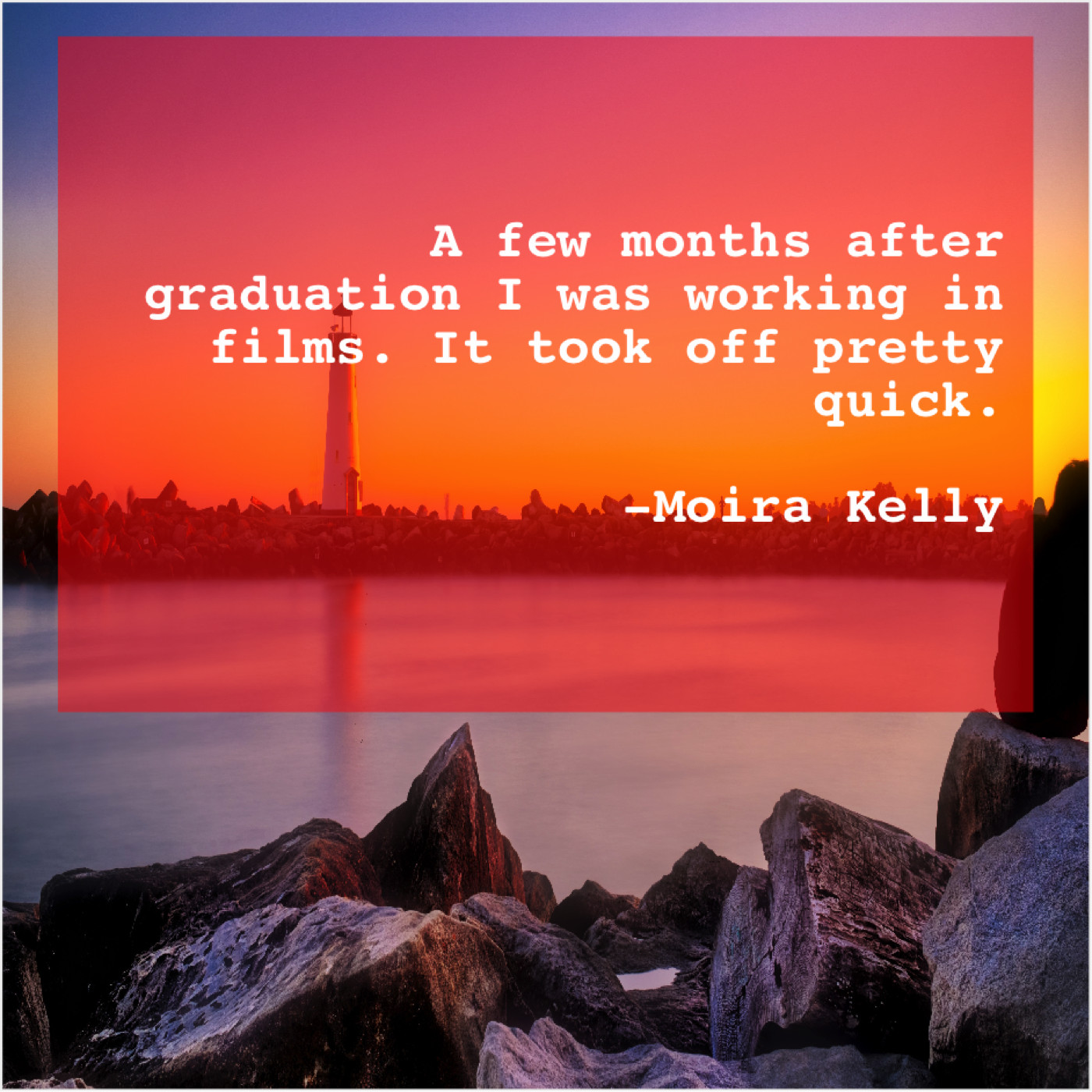 Moira Kelly Moira Kelly – A few months after graduation… October 3, 2019 admin “A few months after graduation I was working in films. It took off pretty quick.”-Moira Kelly
