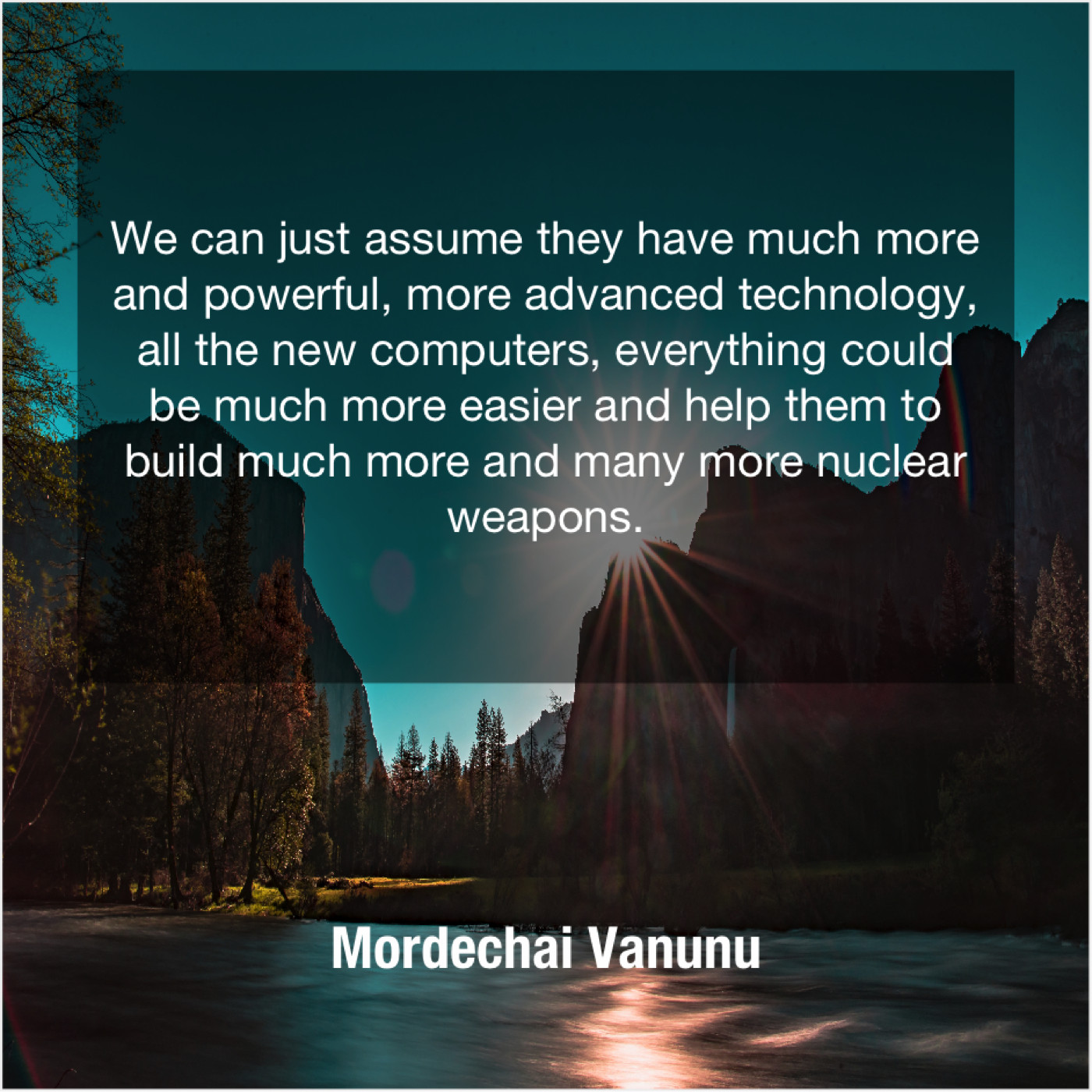 Mordechai Vanunu Mordechai Vanunu – We can just assume they… March 24, 2019 admin “We can just assume they have much more and powerful, more advanced technology, all the new computers, everything could be much more easier and help them to build much more and many more nuclear weapons.”-Mordechai Vanunu
