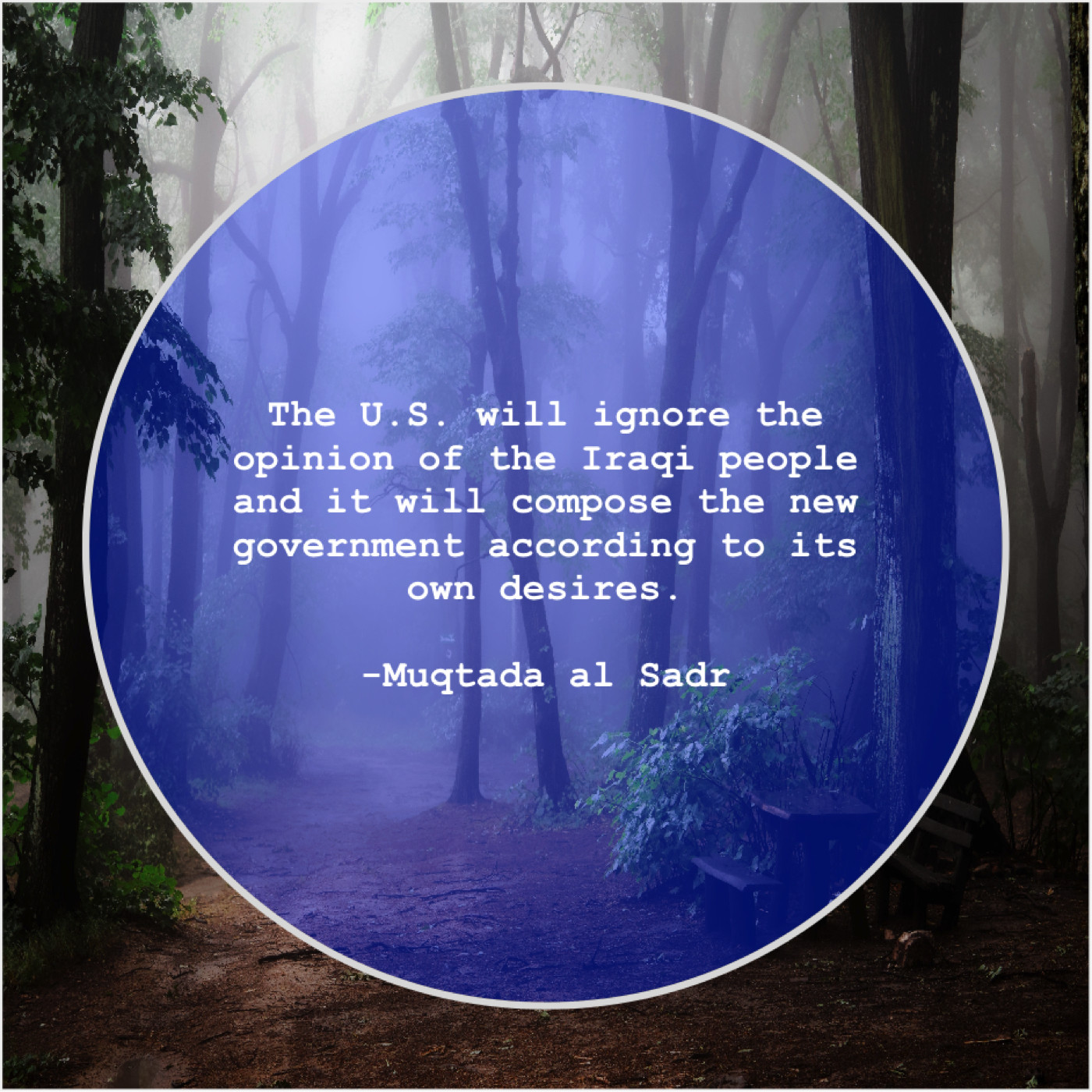 Muqtada al Sadr Muqtada al Sadr – The U.S. will ignore the… January 3, 2019 admin “The U.S. will ignore the opinion of the Iraqi people and it will compose the new government according to its own desires.”-Muqtada al Sadr