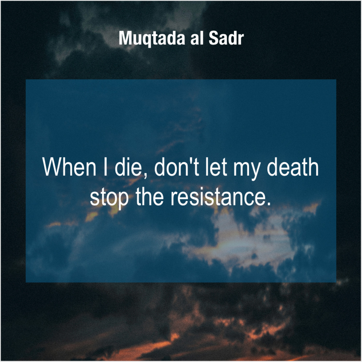 Muqtada al Sadr Muqtada al Sadr – When I die, don’t let… October 3, 2019 admin “When I die, don’t let my death stop the resistance.”-Muqtada al Sadr