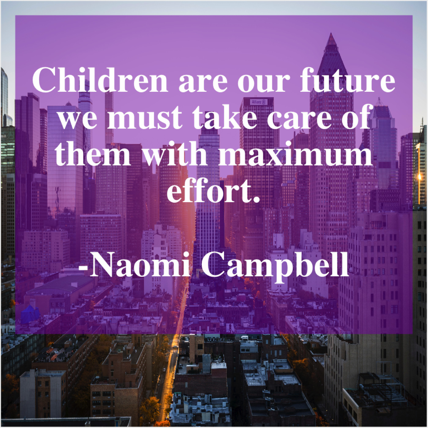 Naomi Campbell Naomi Campbell – Children are our future we… February 10, 2019 admin “Children are our future we must take care of them with maximum effort.”-Naomi Campbell