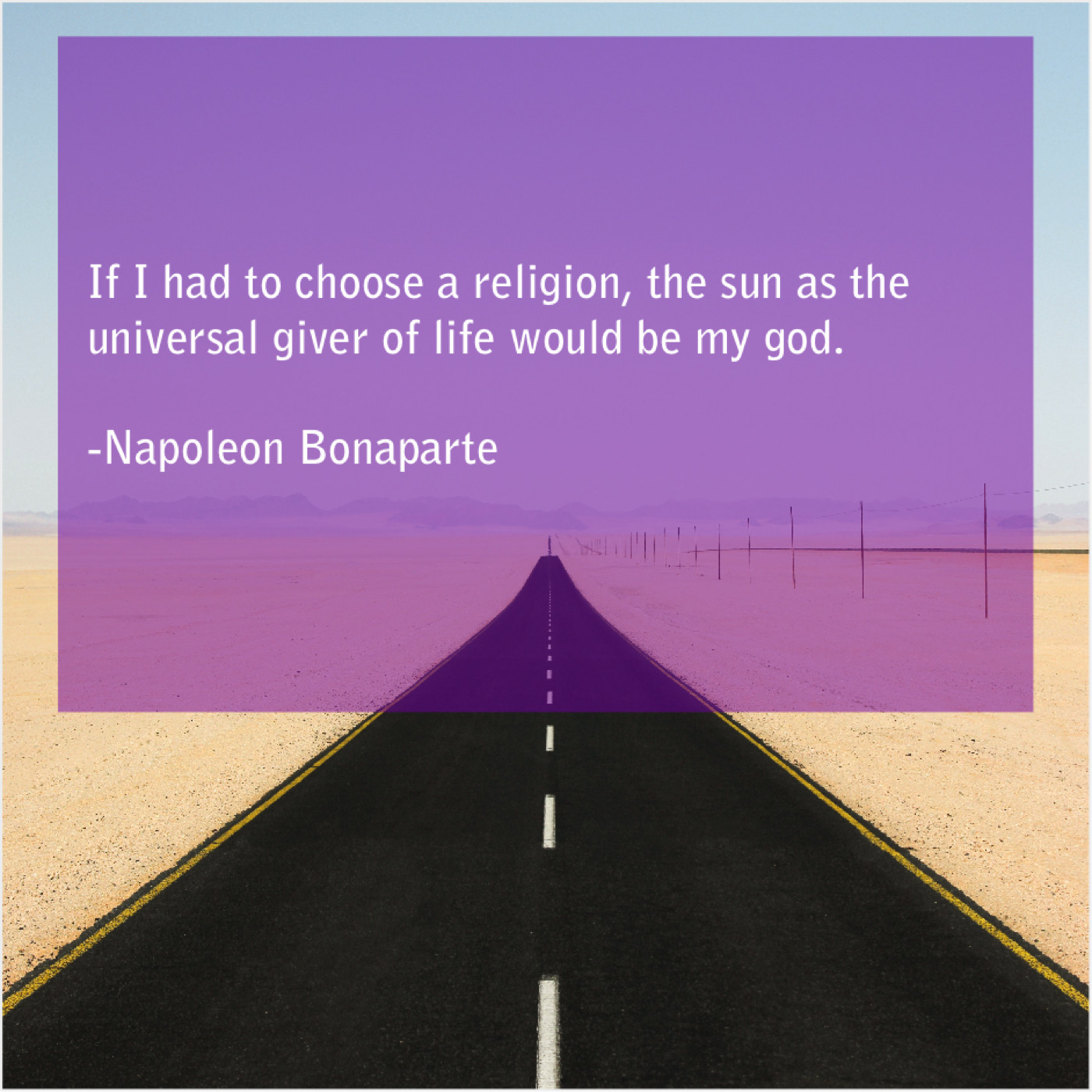 Napoleon Bonaparte Napoleon Bonaparte – If I had to choose… April 17, 2019 admin “If I had to choose a religion, the sun as the universal giver of life would be my god.”-Napoleon Bonaparte
