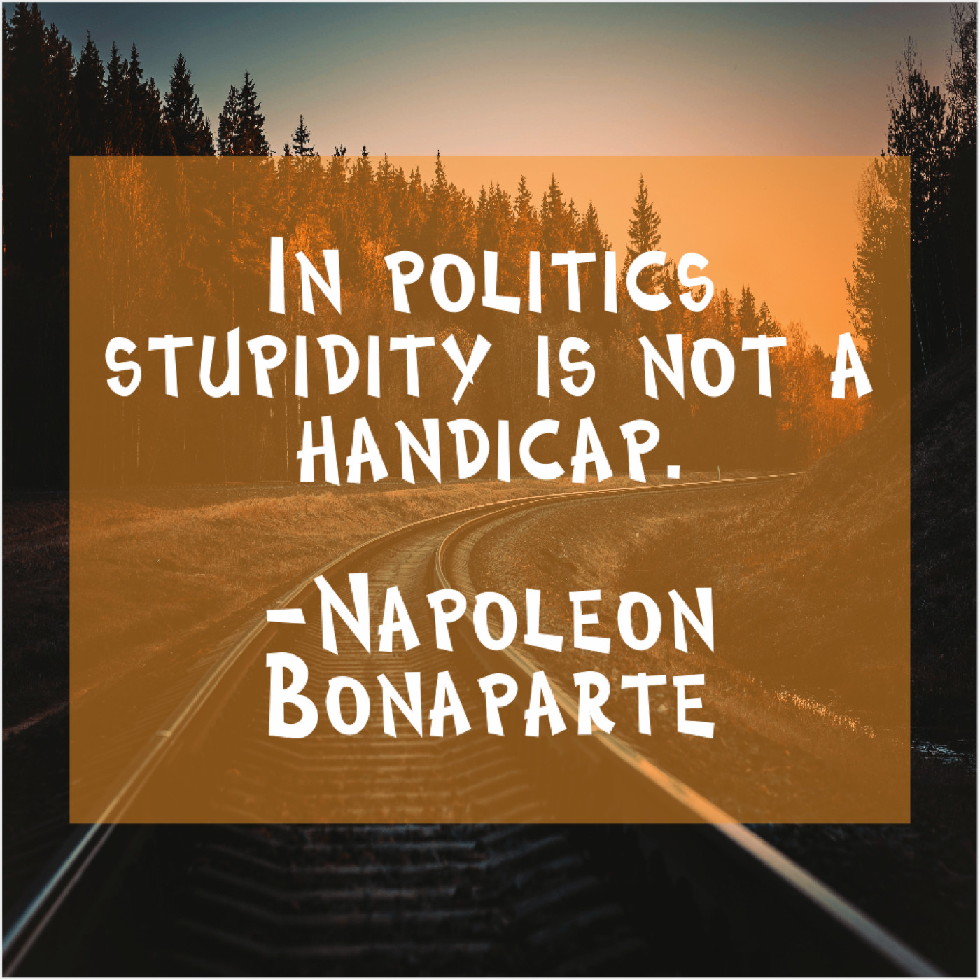 Napoleon Bonaparte Napoleon Bonaparte – In politics stupidity is not… February 8, 2019 admin “In politics stupidity is not a handicap.”-Napoleon Bonaparte