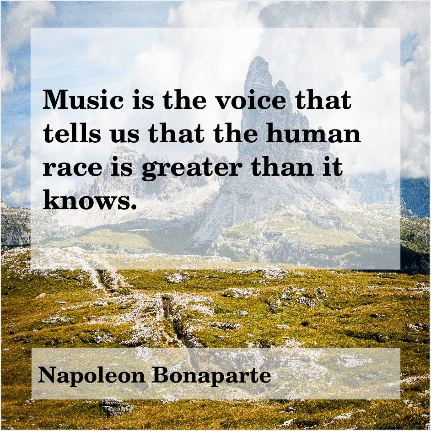 Napoleon Bonaparte Napoleon Bonaparte – Music is the voice that… March 8, 2019 admin “Music is the voice that tells us that the human race is greater than it knows.”-Napoleon Bonaparte