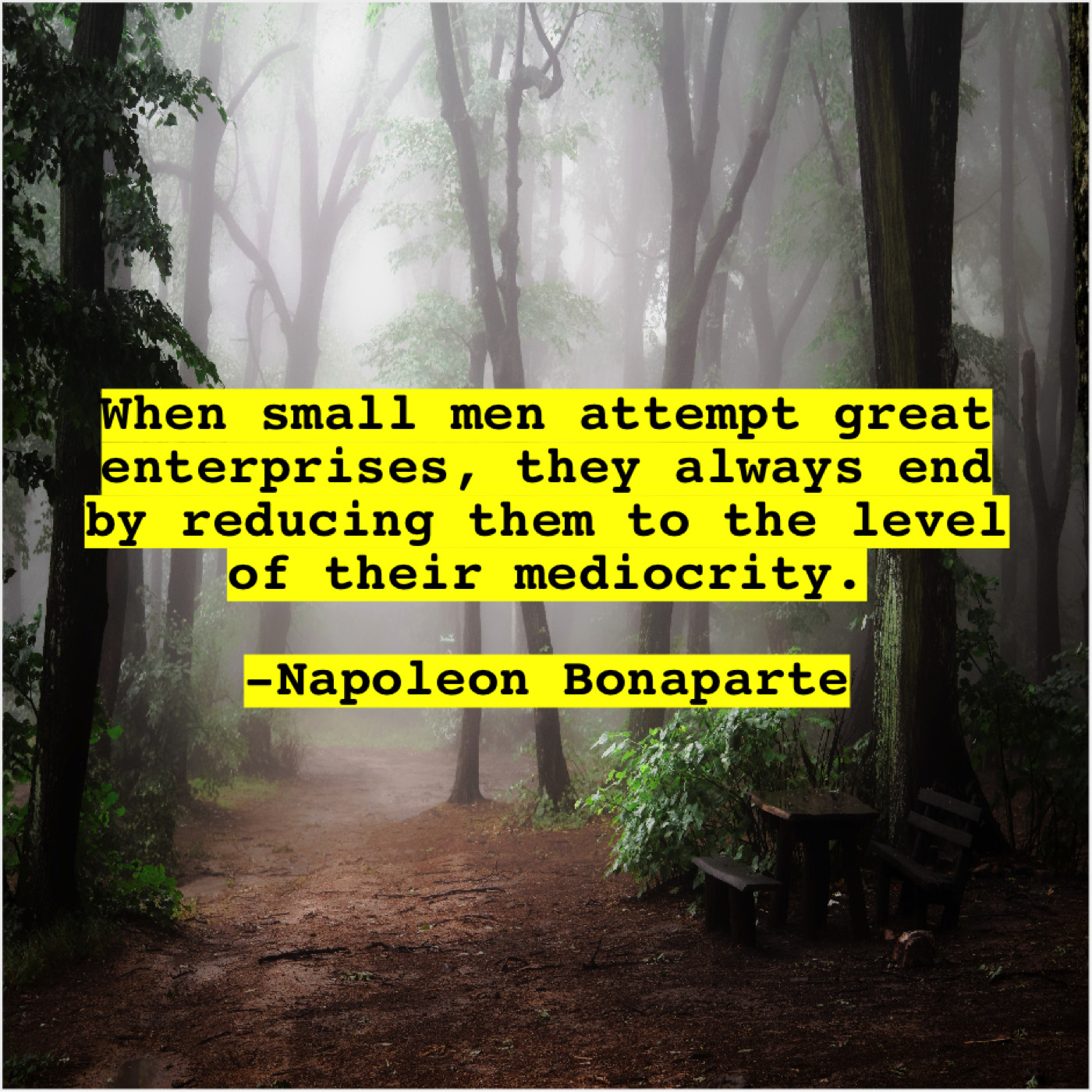 Napoleon Bonaparte Napoleon Bonaparte – When small men attempt great… September 13, 2019 admin “When small men attempt great enterprises, they always end by reducing them to the level of their mediocrity.”-Napoleon Bonaparte