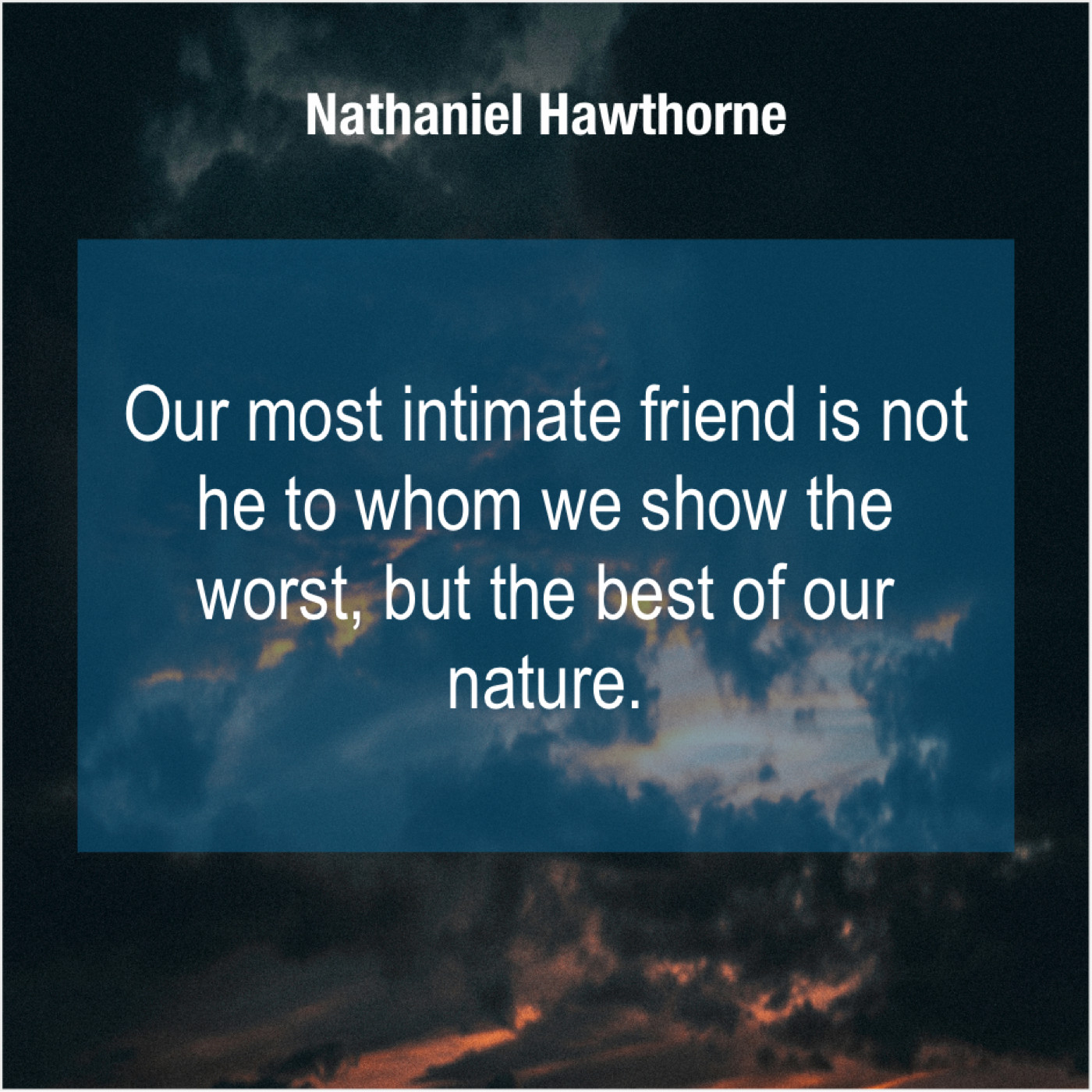 Nathaniel Hawthorne Nathaniel Hawthorne – Our most intimate friend is… August 2, 2019 admin “Our most intimate friend is not he to whom we show the worst, but the best of our nature.”-Nathaniel Hawthorne